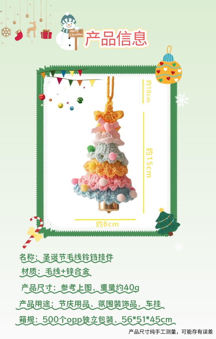 knitted colorful christmas tree bell pendant in g style