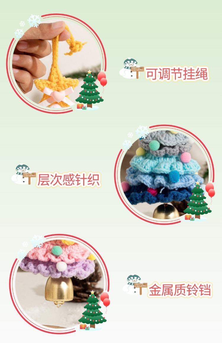 yarn-knitted colorful christmas tree bell pendant, style f