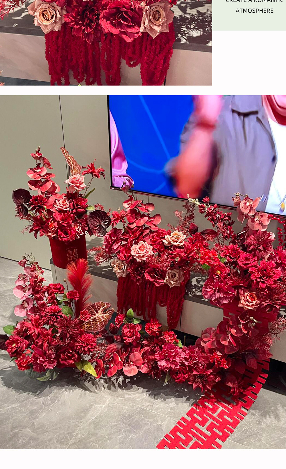 3-head chinese-style peony-rose red
