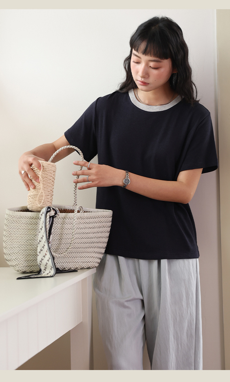 color: soft white, woven gray, elegant apricot, quiet blue, hemp stripes
