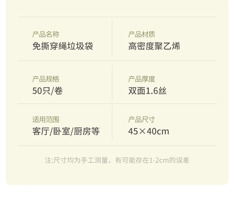 tear-free cream bag 40*50cm50 pieces per roll