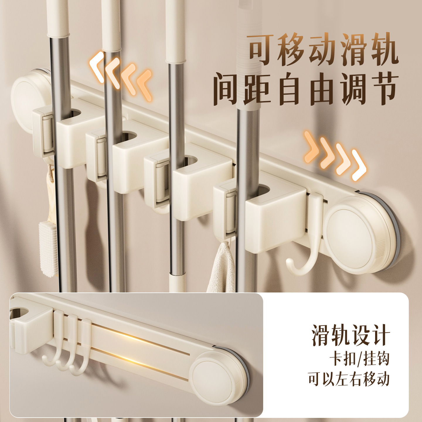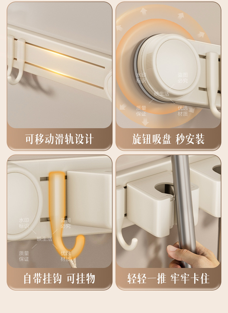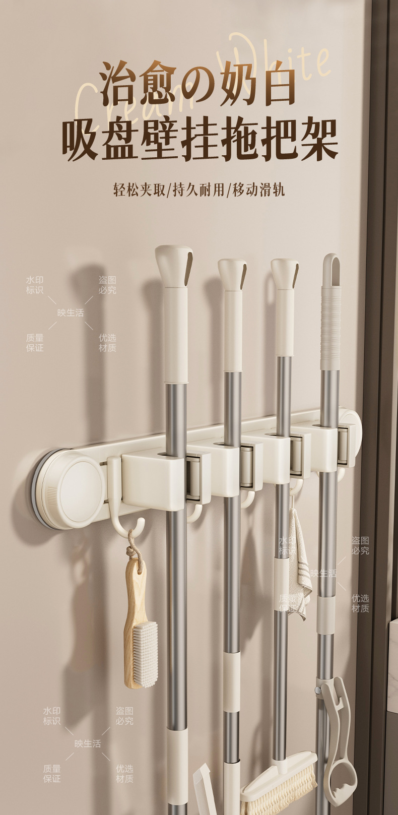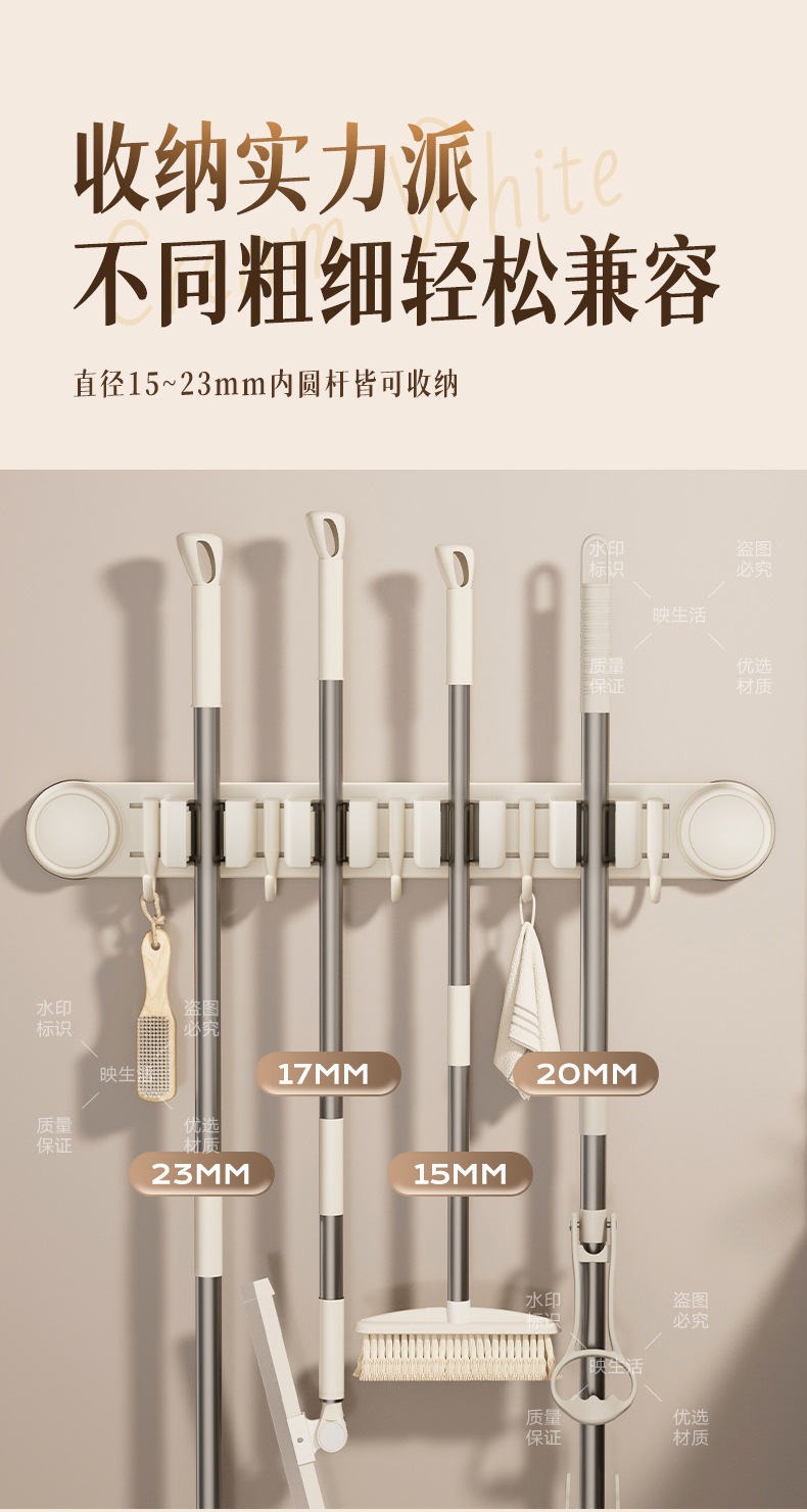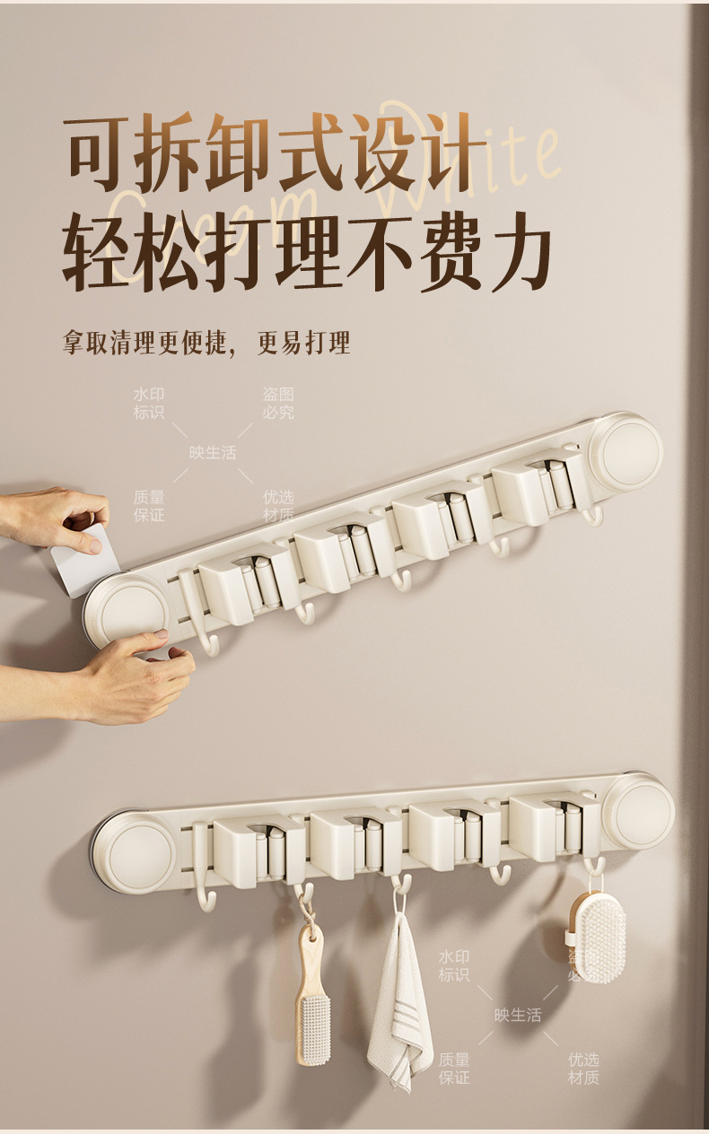 [milky white] sucker mop clip 4 cards 5 hooks