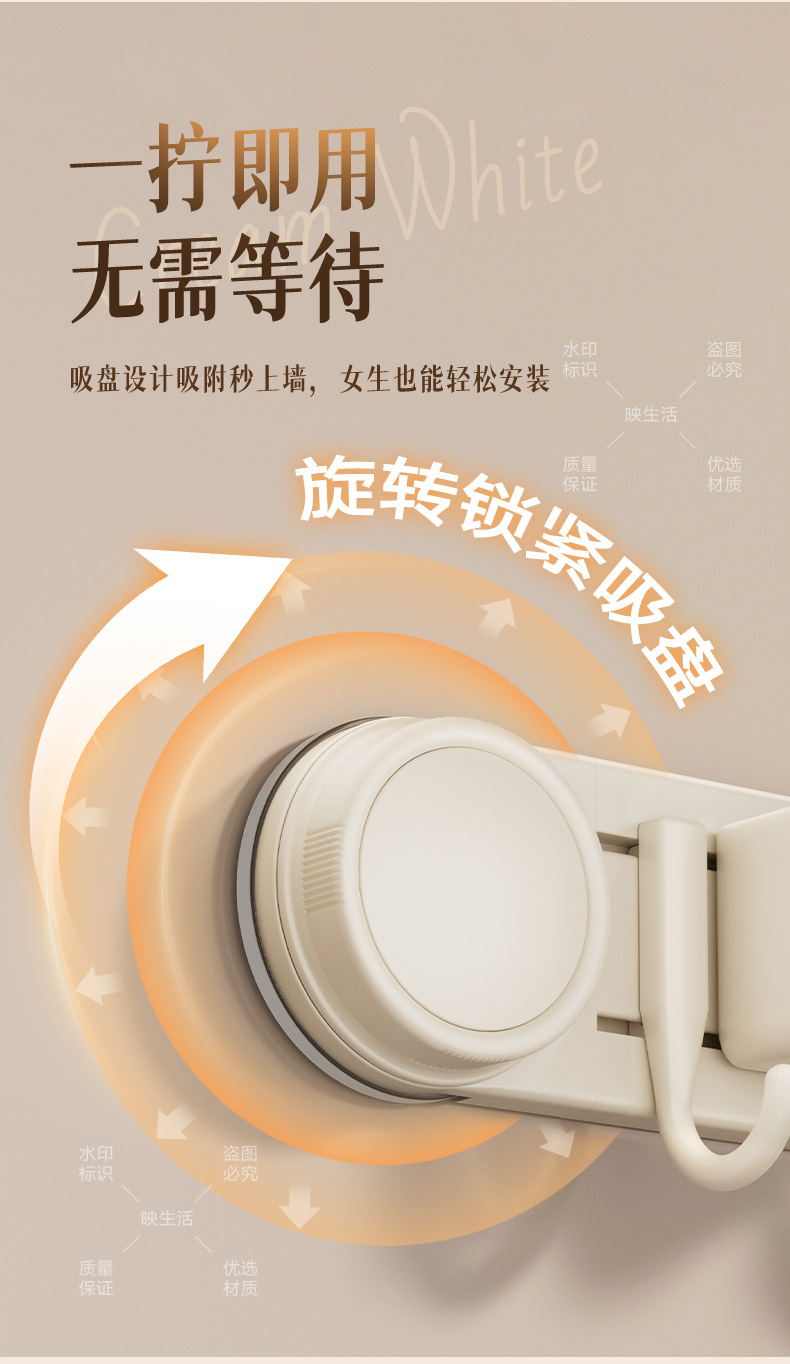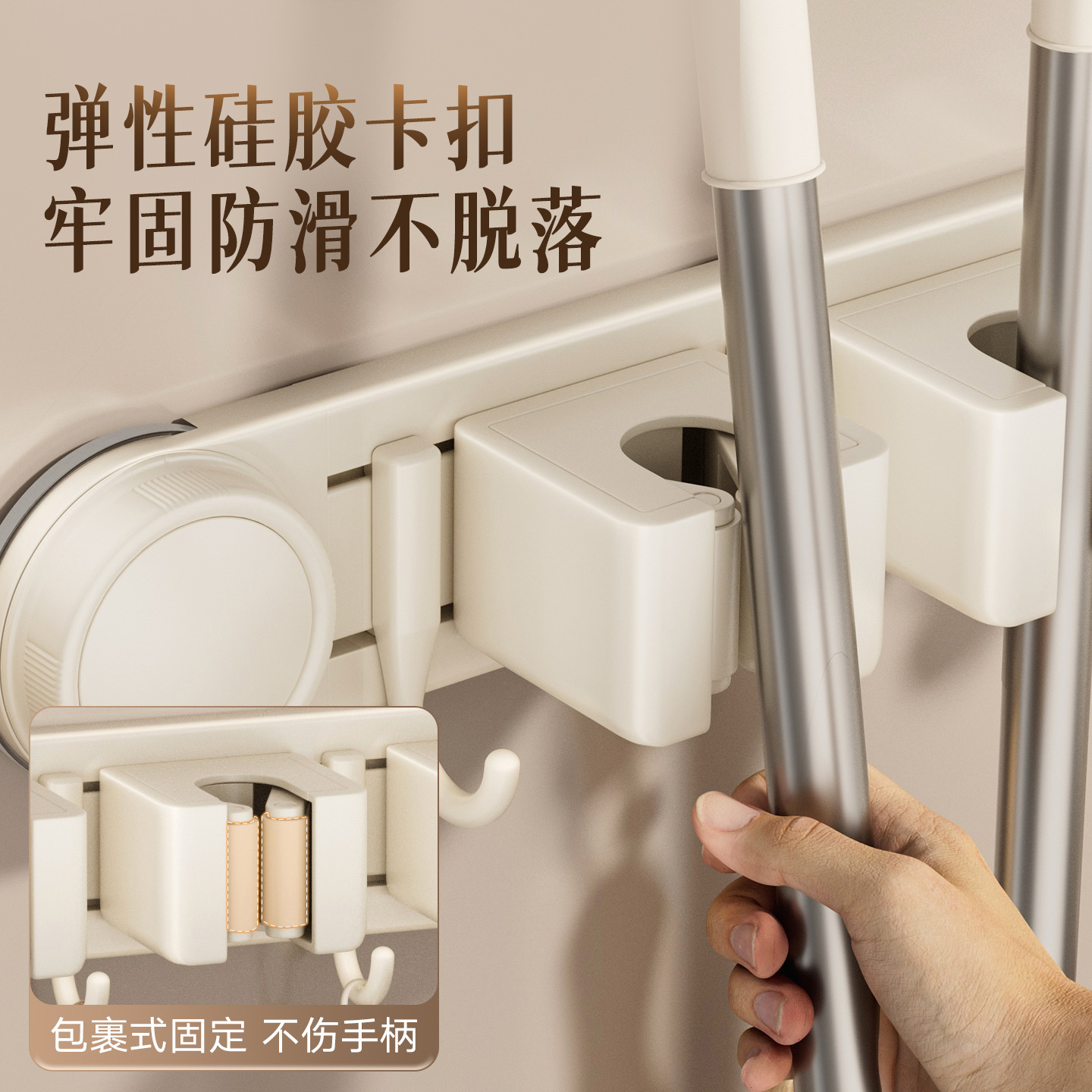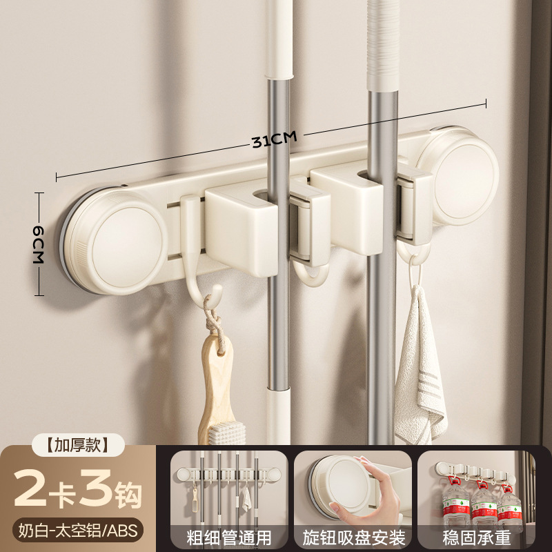 [milky white] sucker mop clip 3 cards 4 hooks