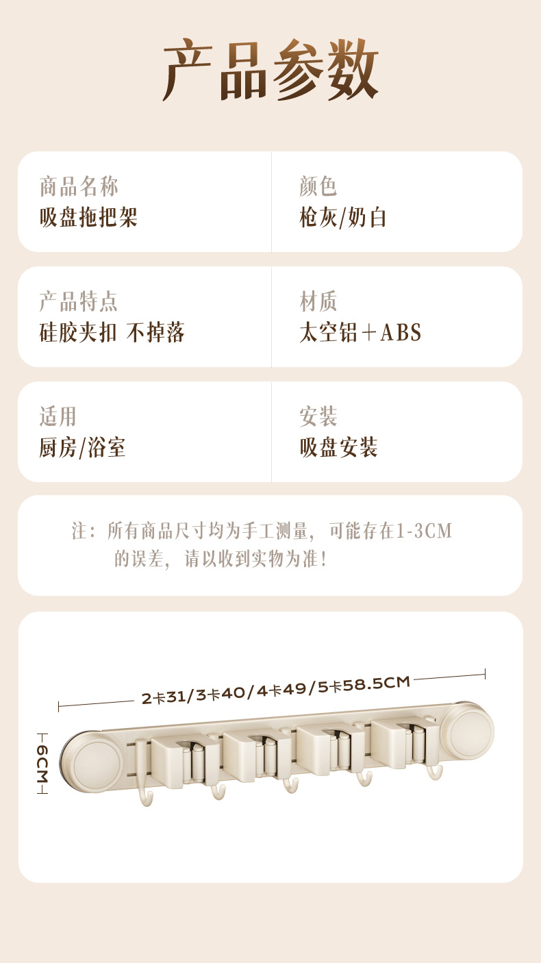 [milky white] sucker mop clip 5 cards 6 hooks