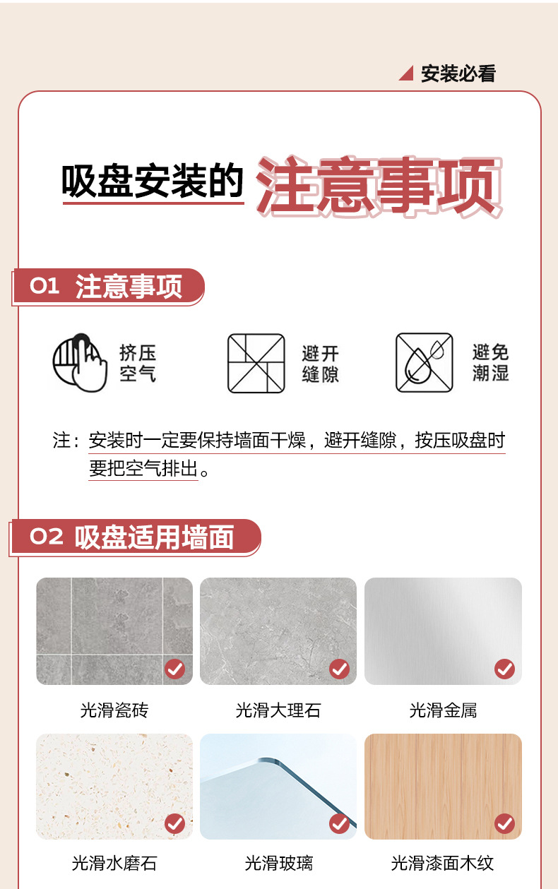 [milky white] sucker mop clip 2 cards 3 hooks