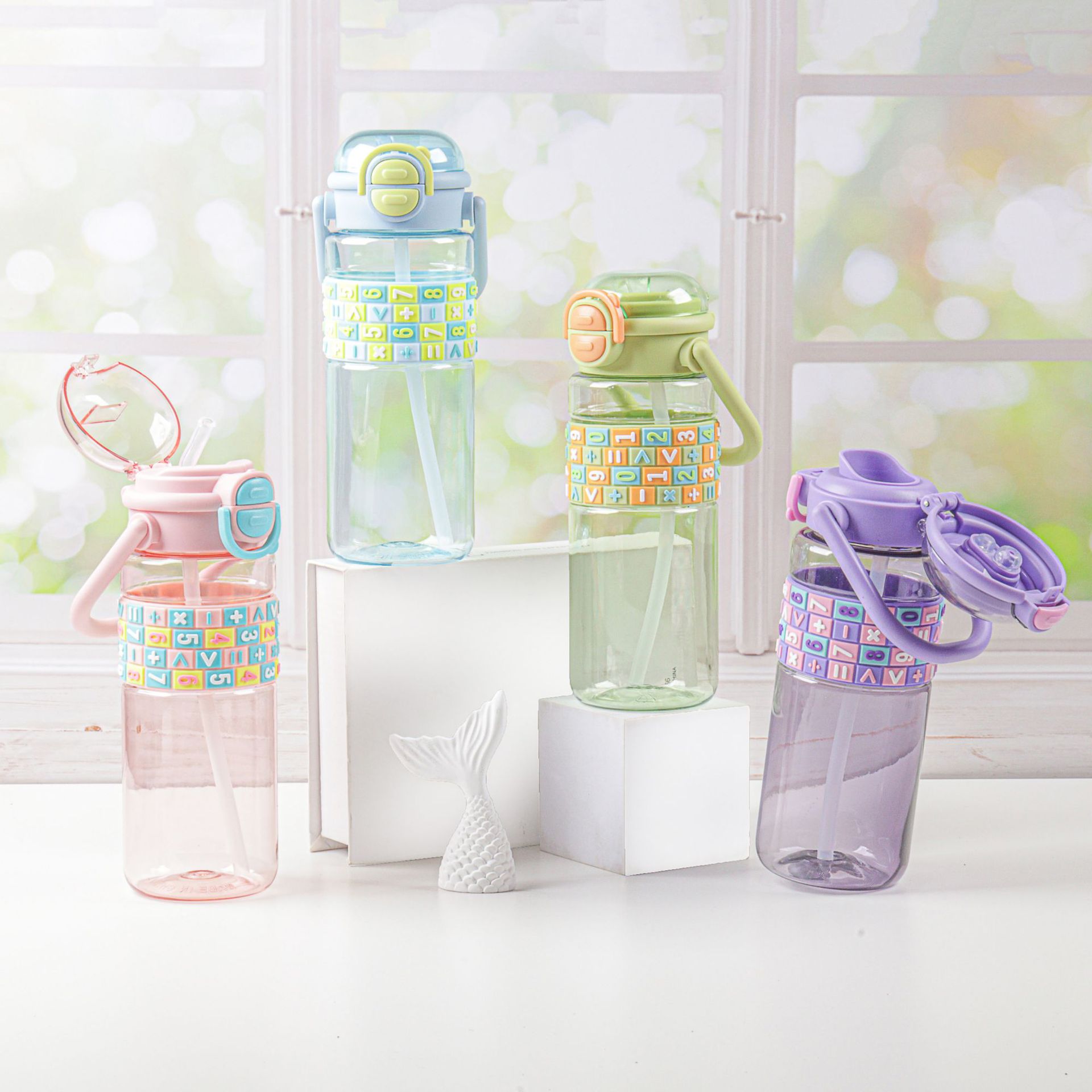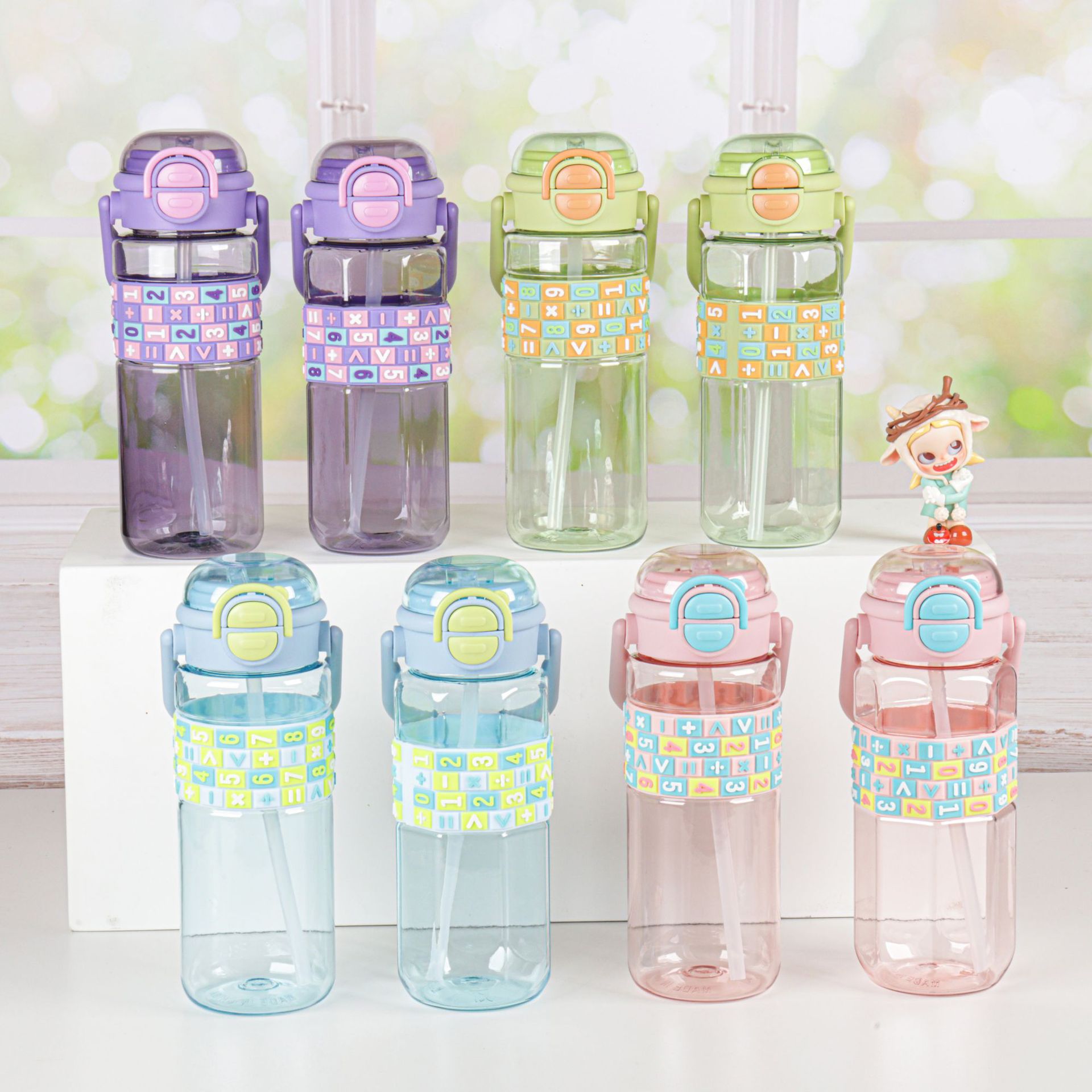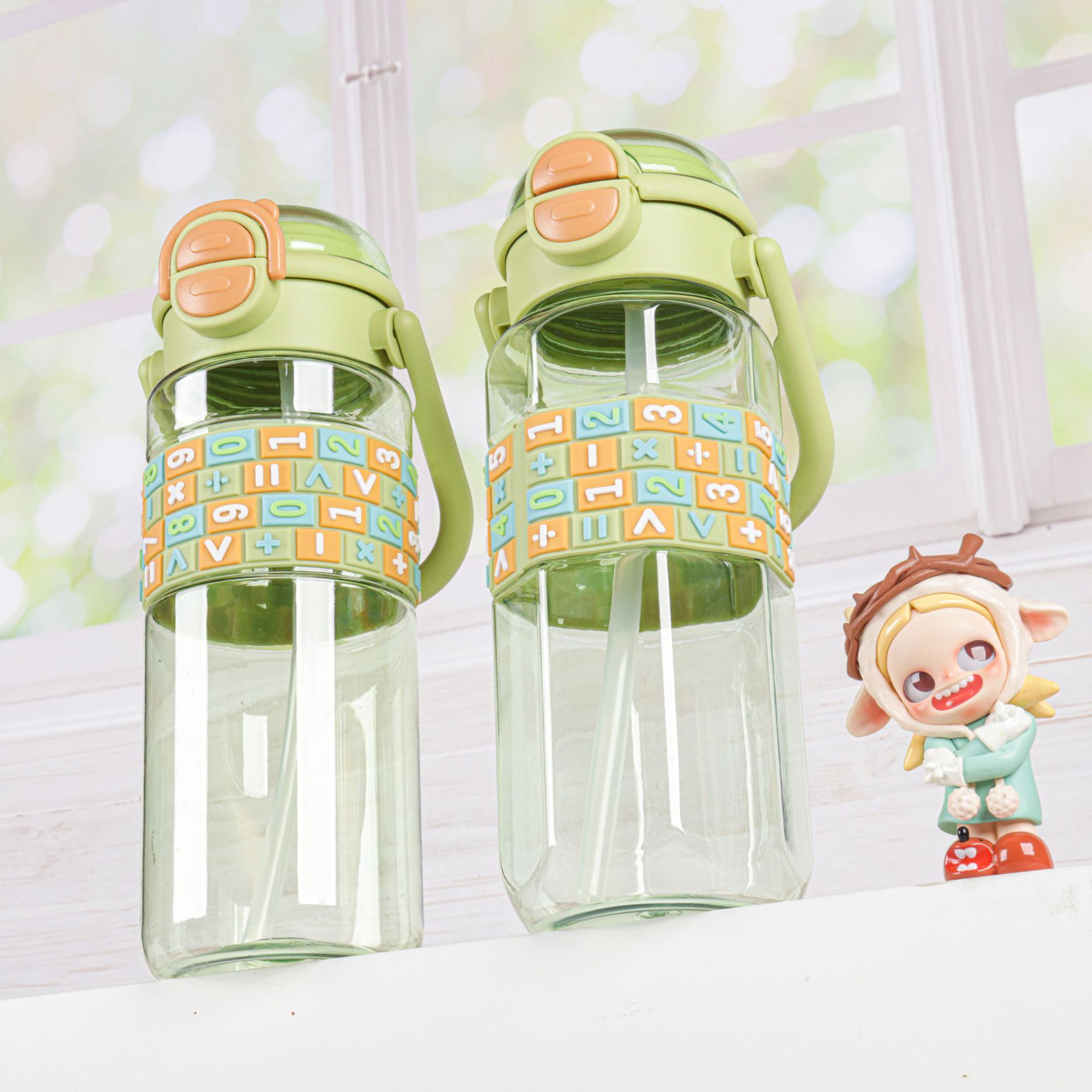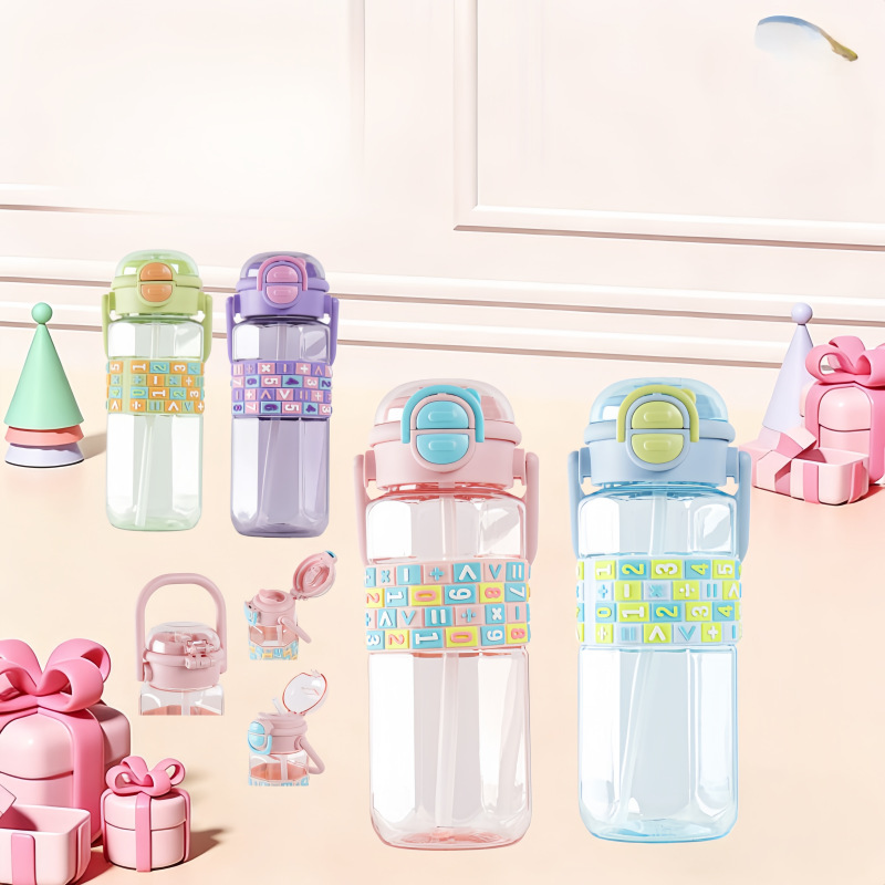 product category: double drinking mouth plastic water cup good-looking large-capacity water cup children's straw cup
