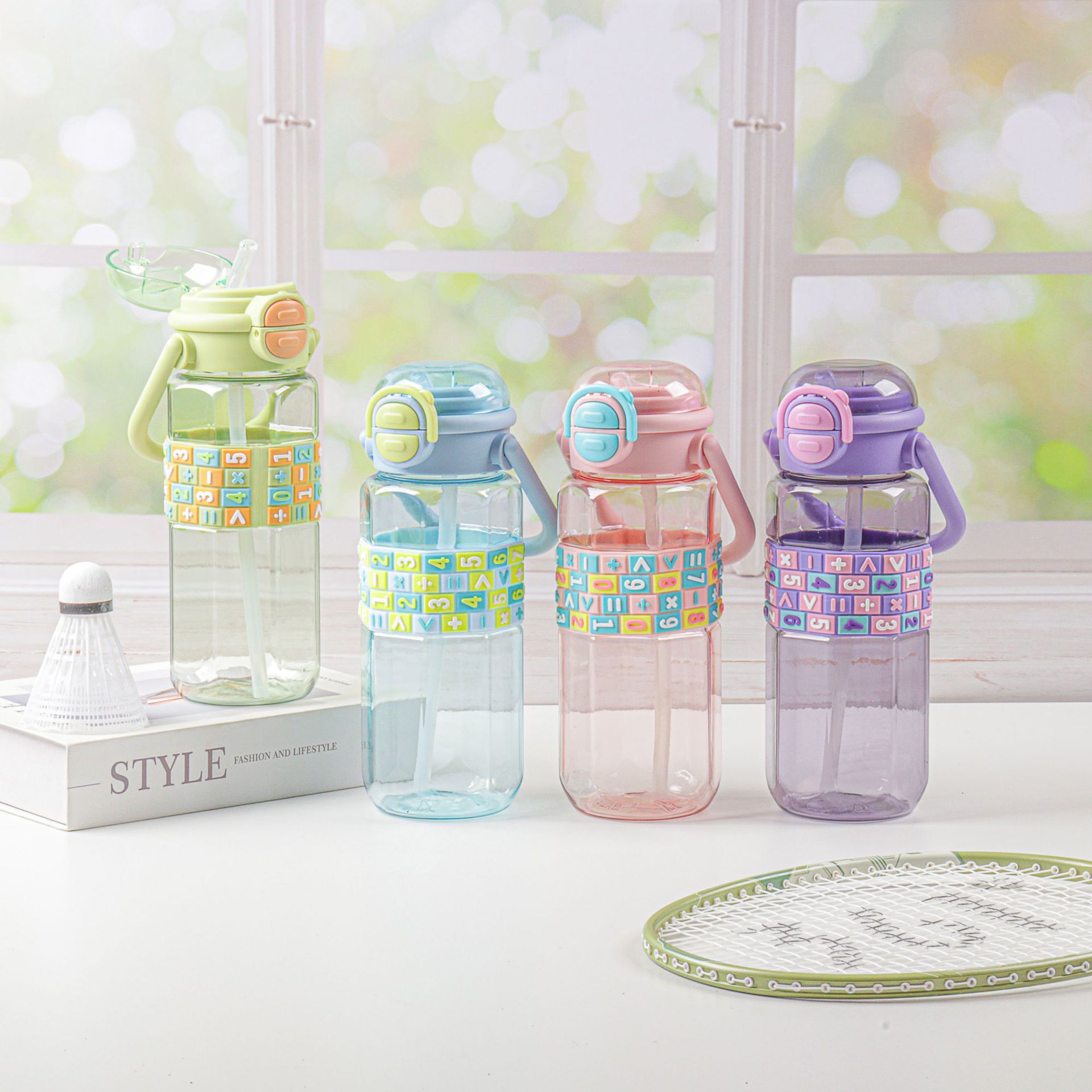 product type: double drinking mouth plastic water cup good-looking large-capacity water cup children's straw cup