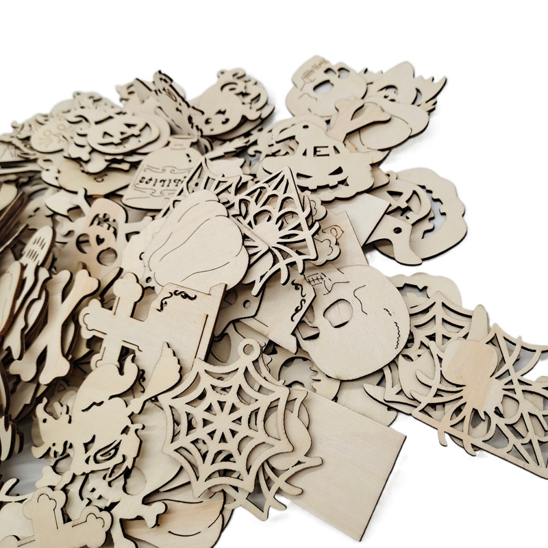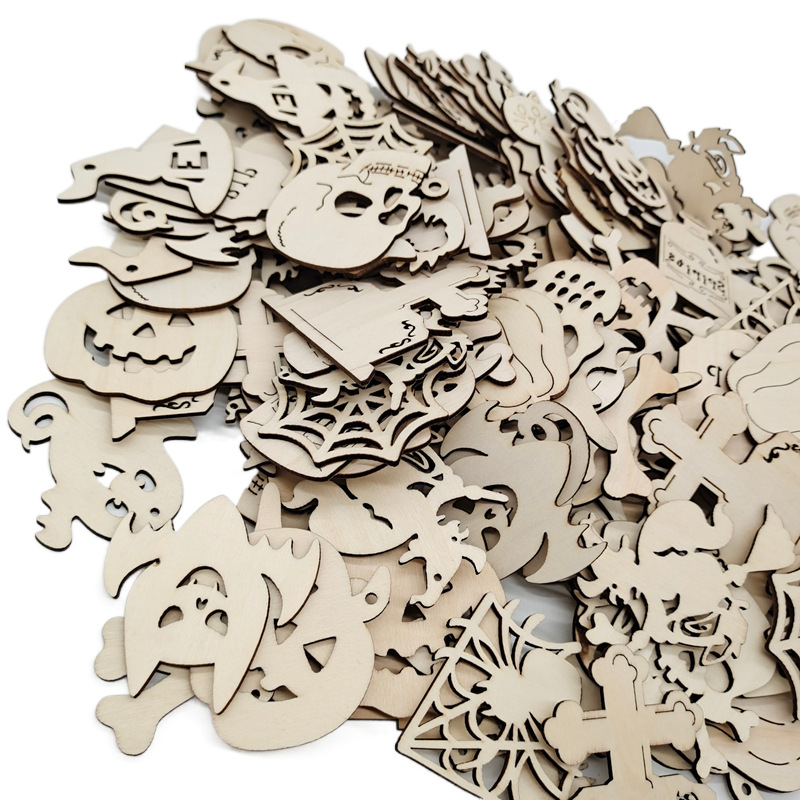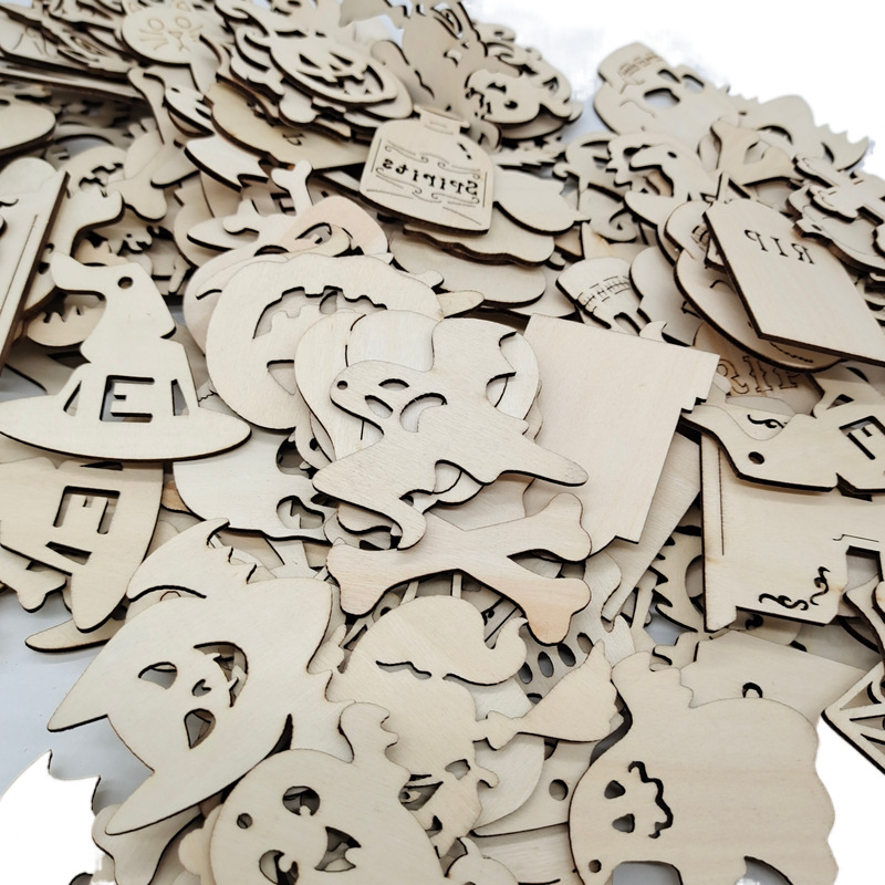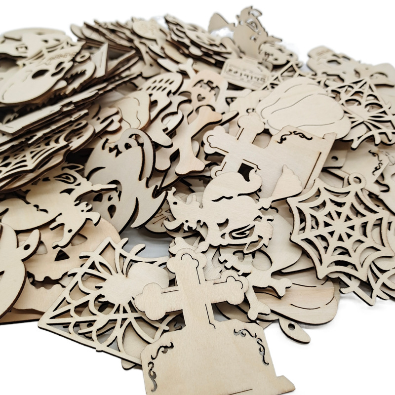 in-stock laser wood piece wooden product pendant halloween halloween decoration wooden product craft pendant factory direct supply