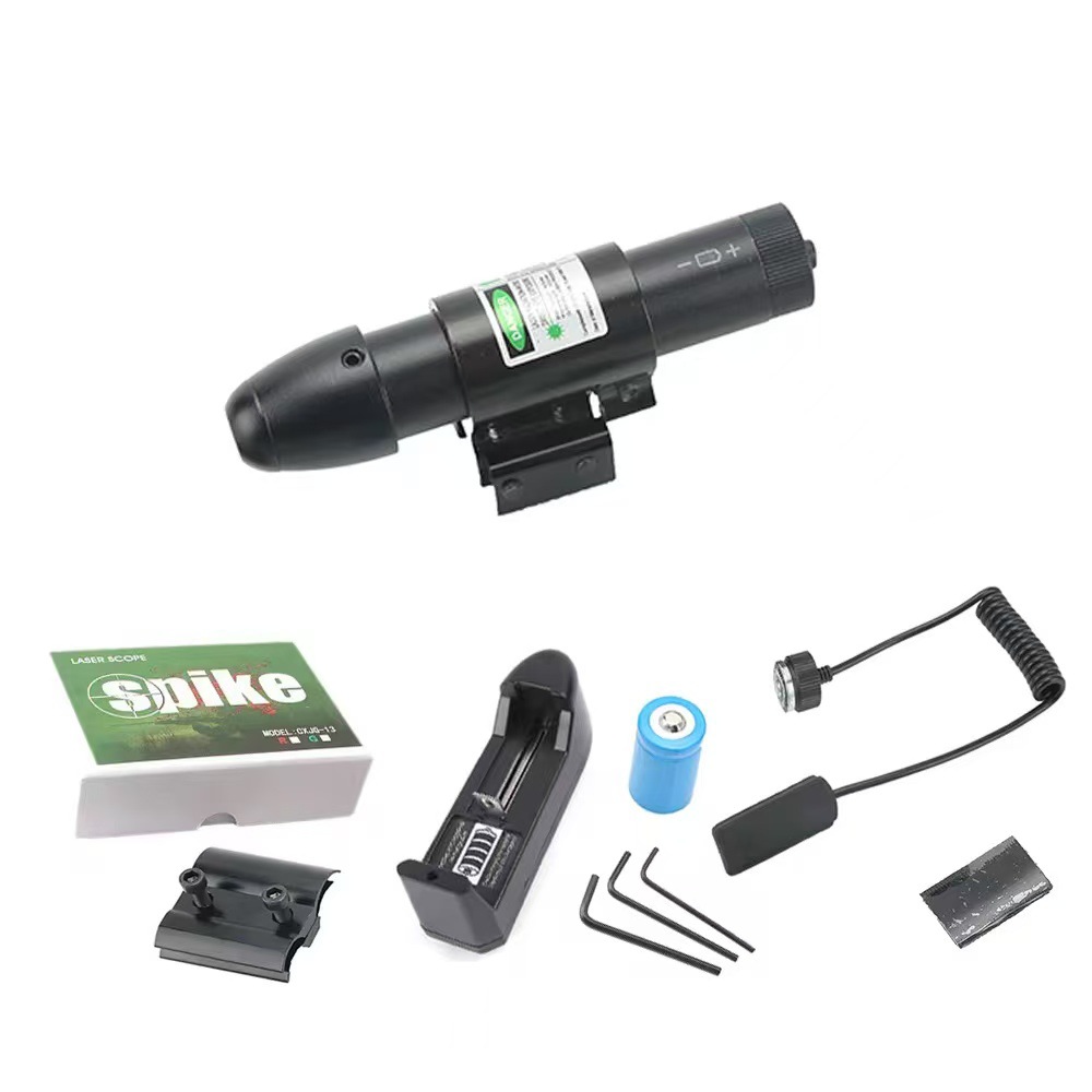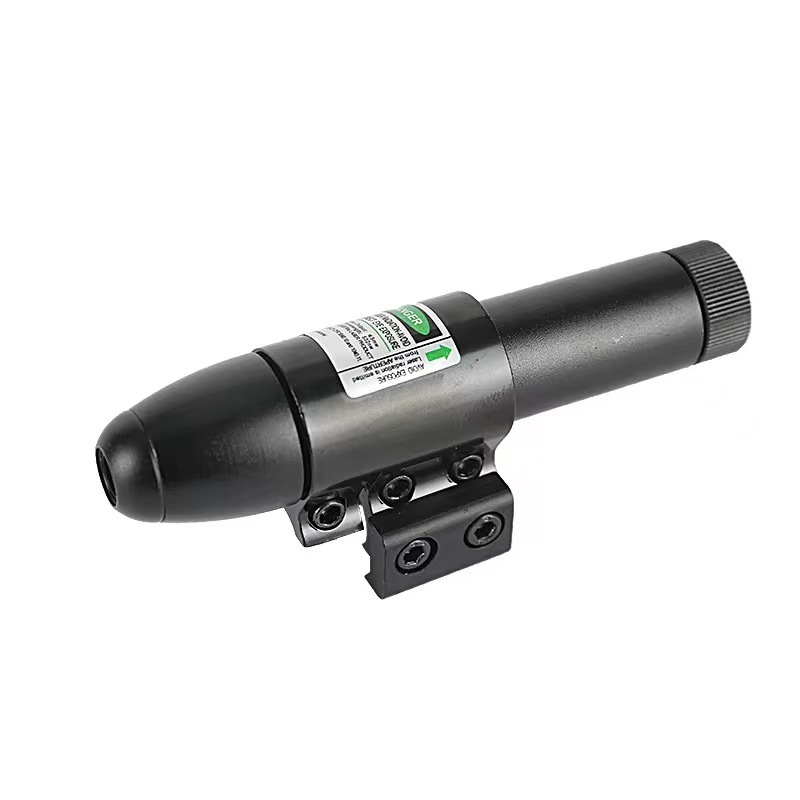 Bullet-shaped green laser sight with tail switch and infrared laser calibration equipment, JG13 with red and green lasers.