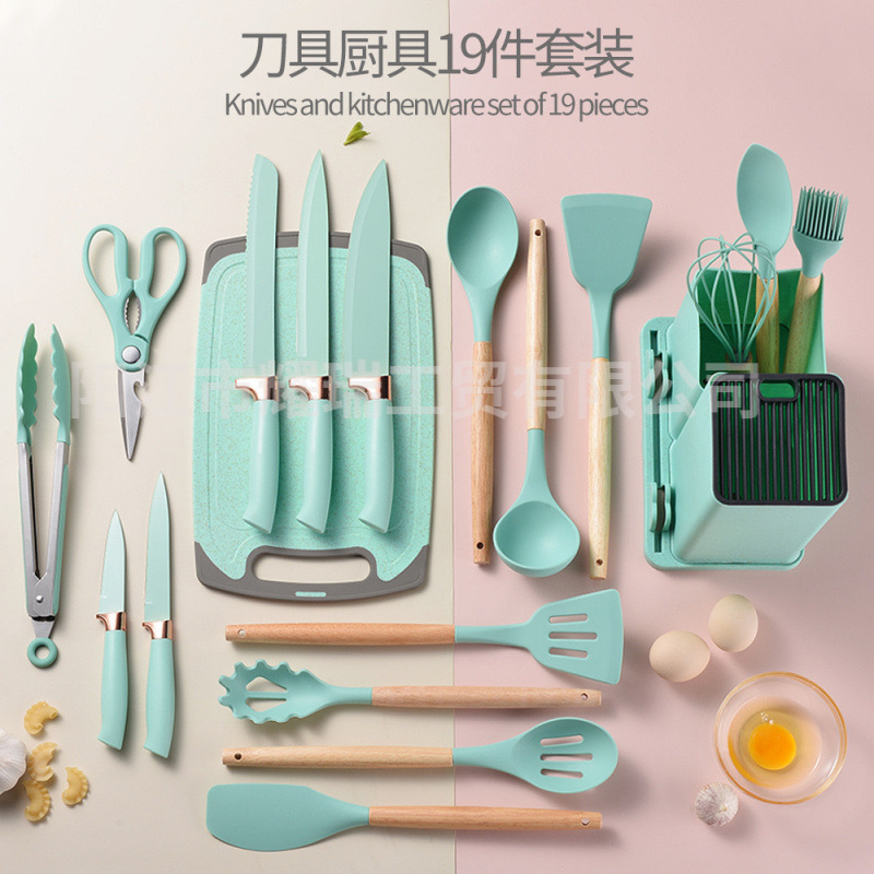 1800g silicone kitchen utensil 19-piece set (light green)