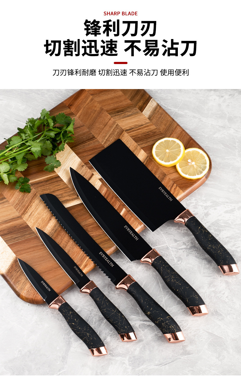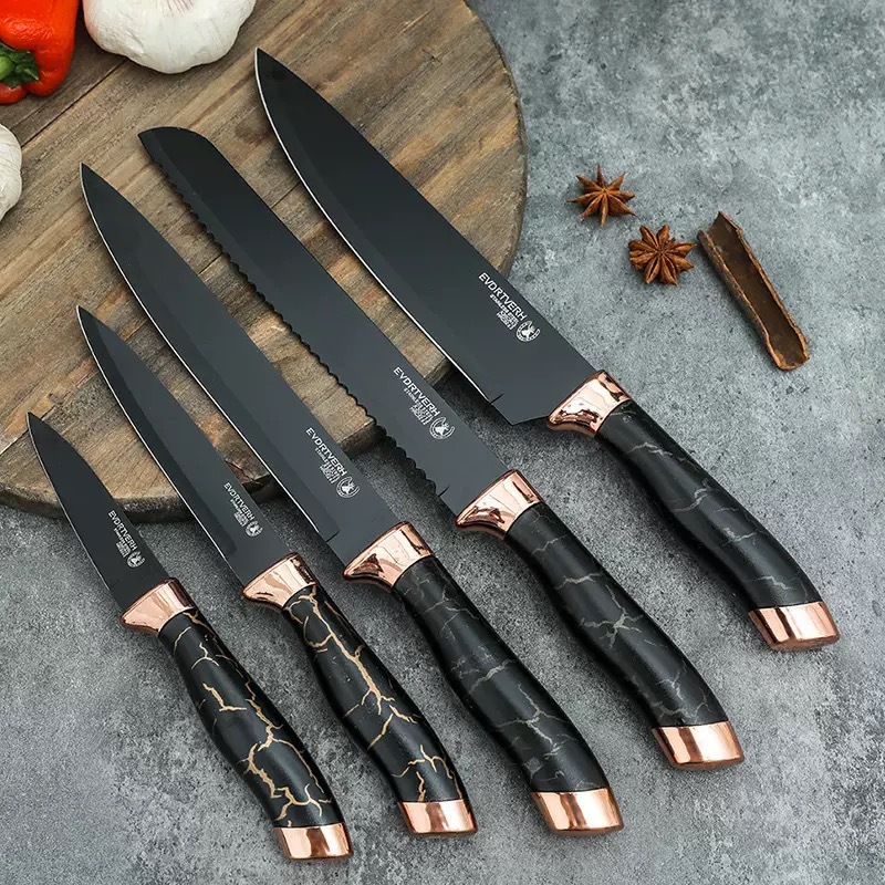 chef's knife 9-piece set-plastic seat (black gold)
