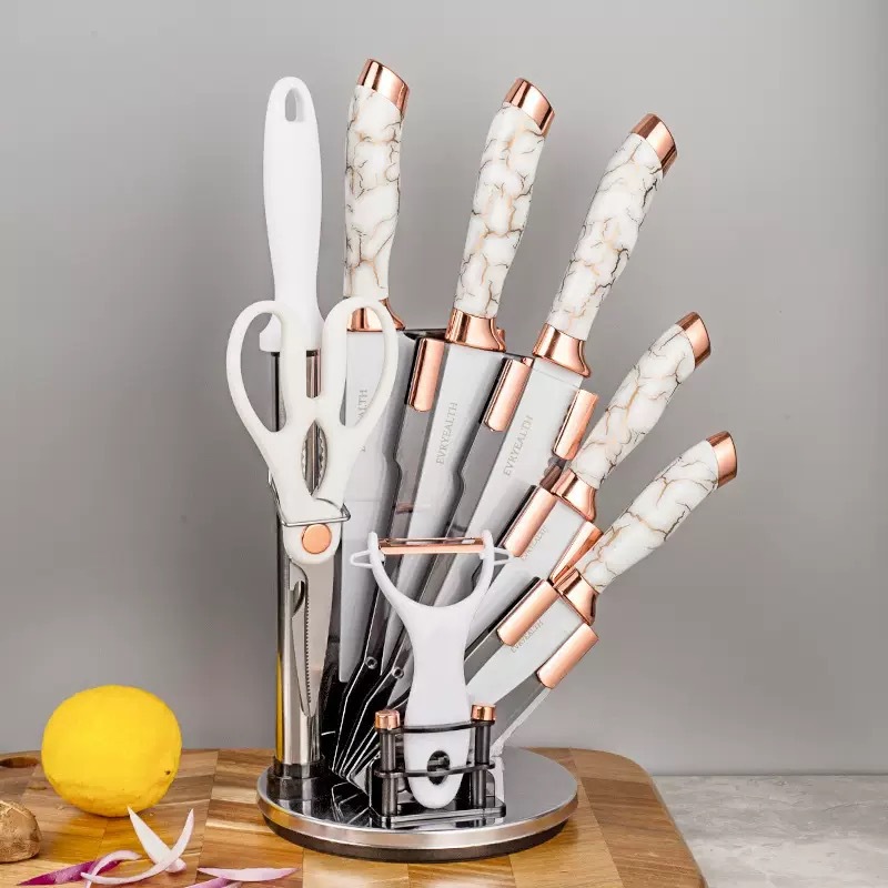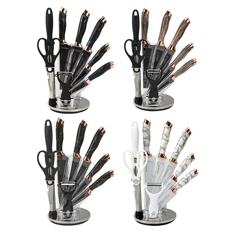 chef's knife 9-piece set-plastic seat (platinum)