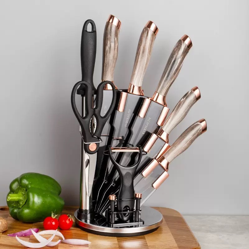 chef's knife 9-piece set-plastic seat (brown)