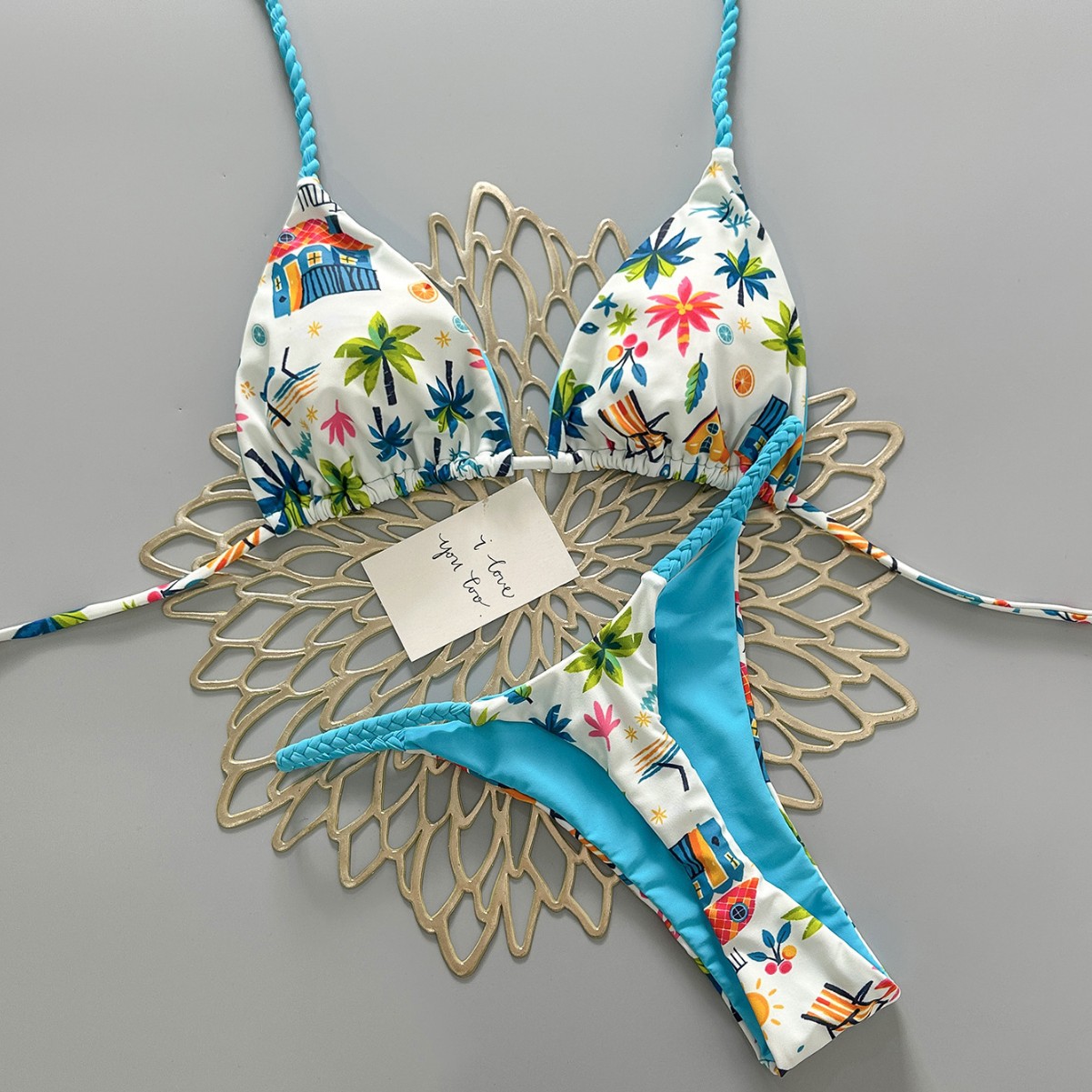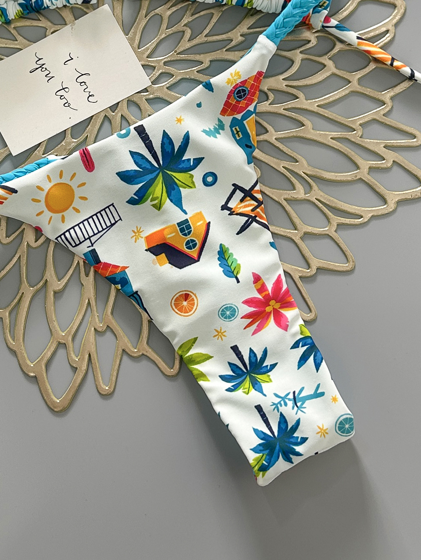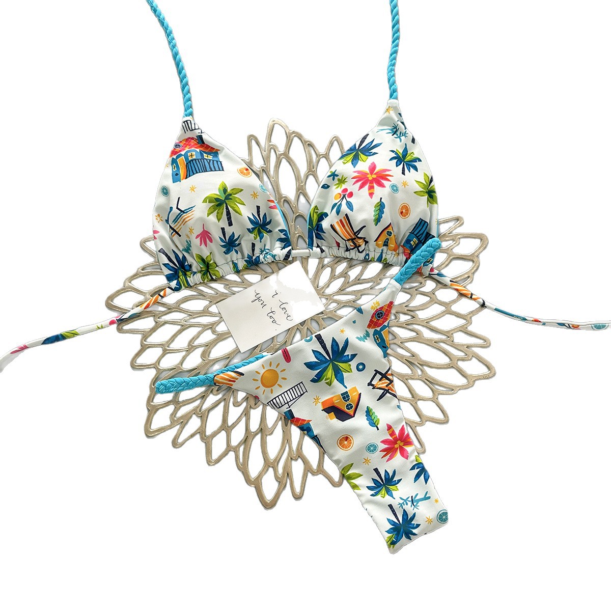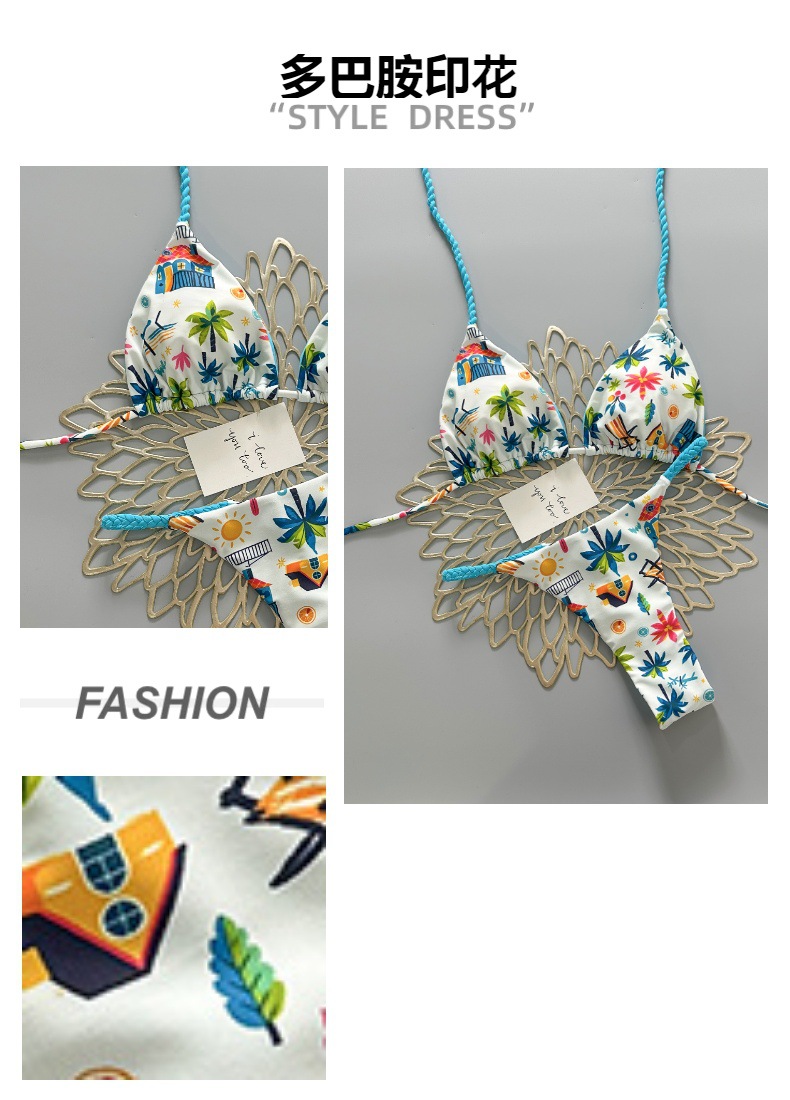 cross-border new arrival european and american color dopamine print three-point lively sexy split swimsuit women's bikini swimsuit