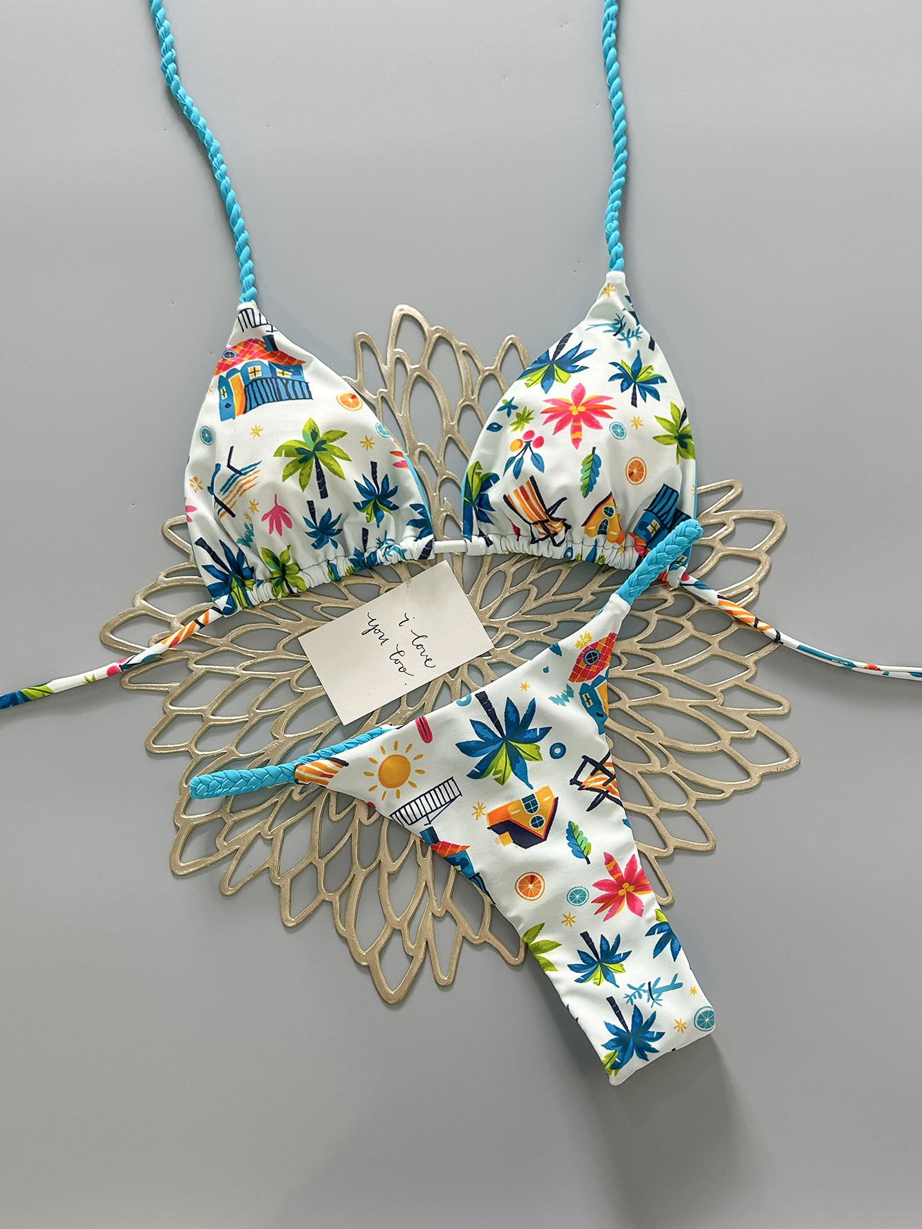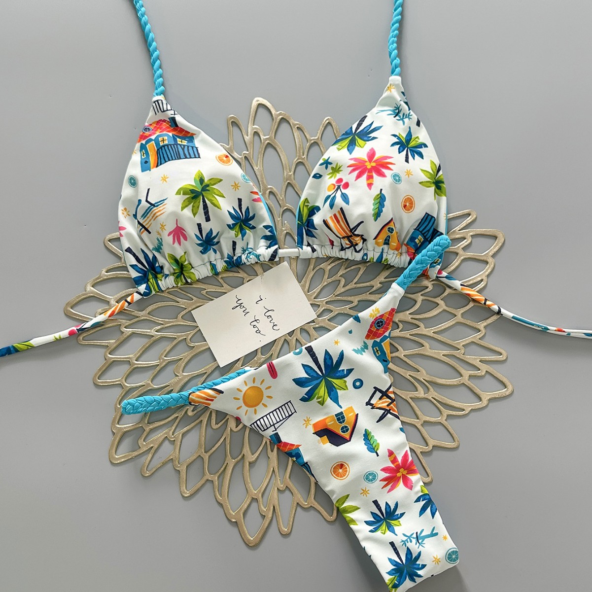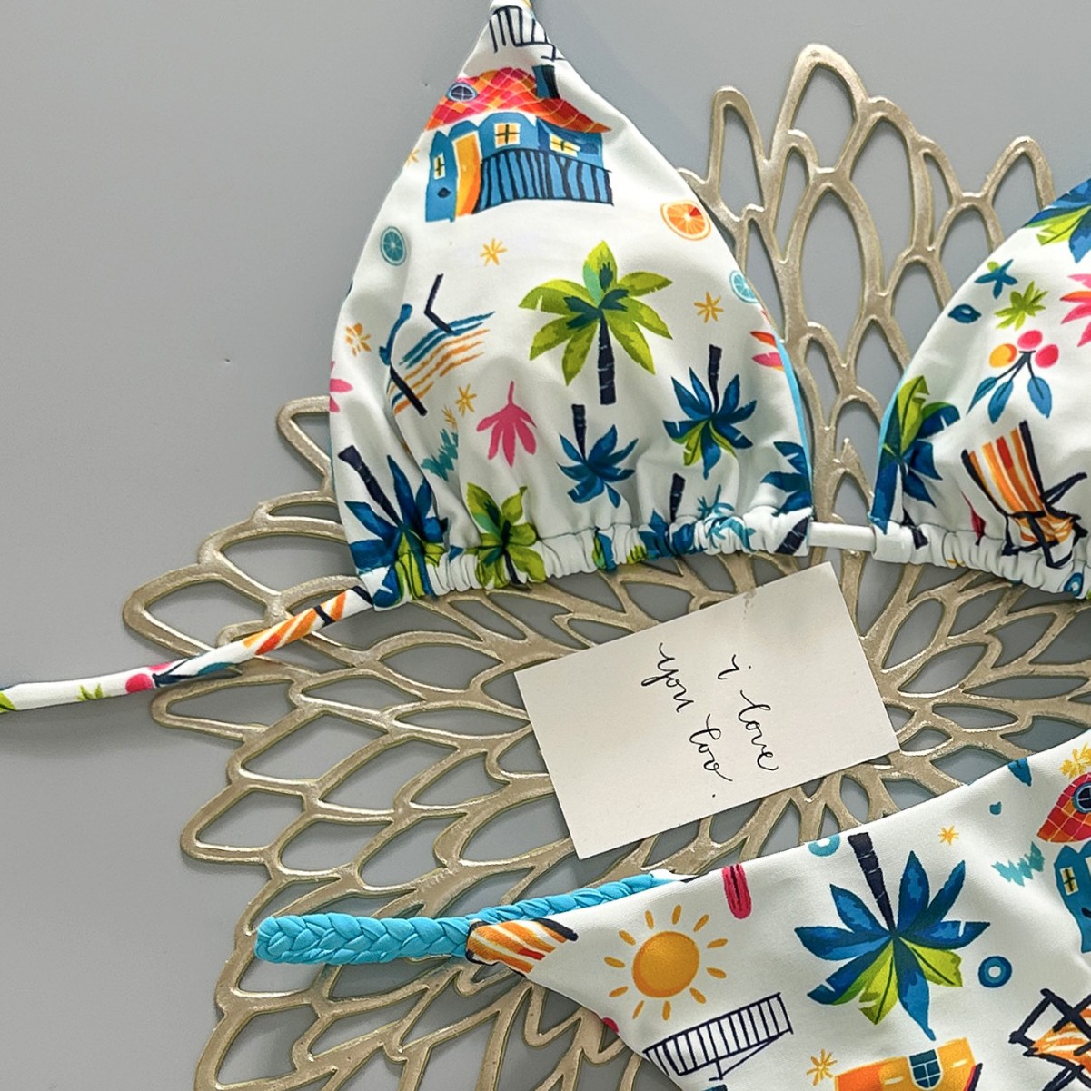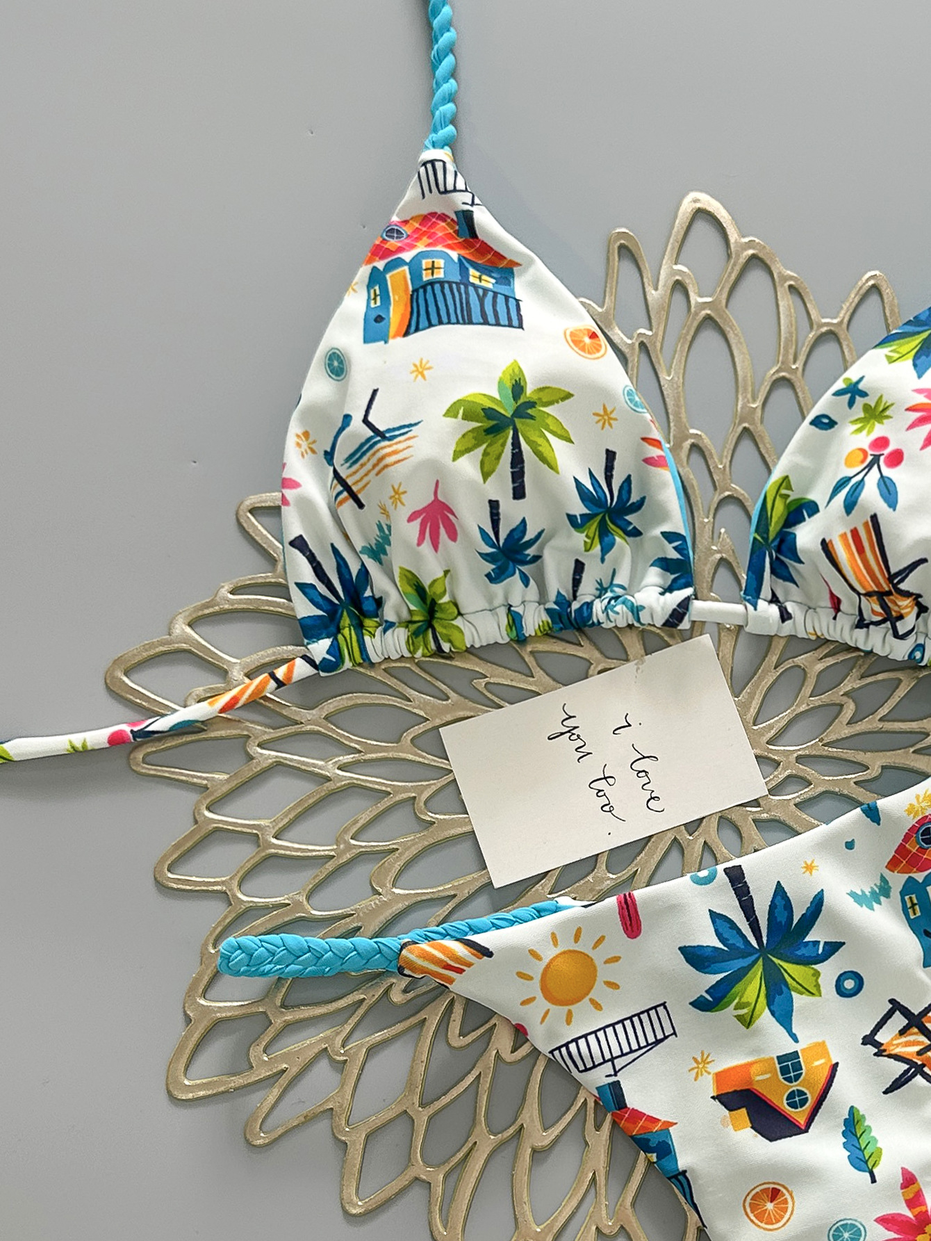 cross-border new arrival european and american color dopamine print three-point lively sexy split swimsuit women's bikini swimsuit