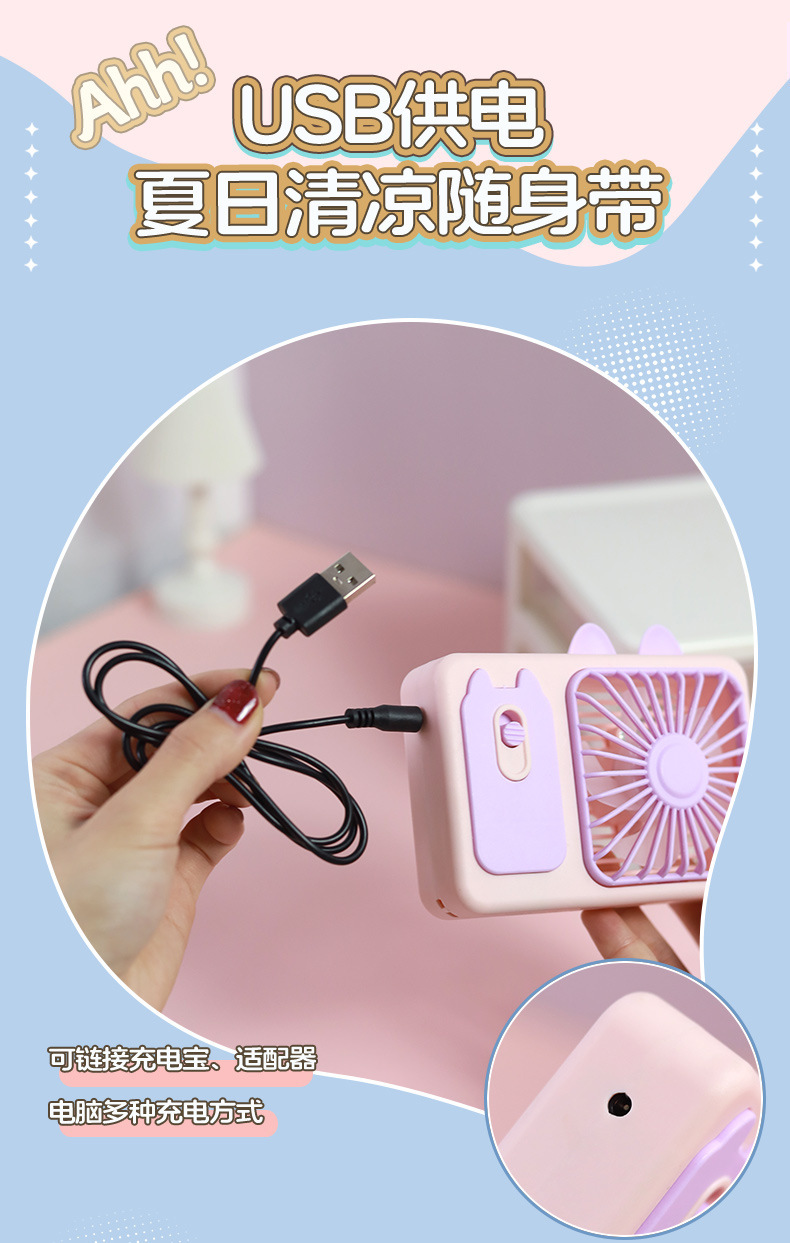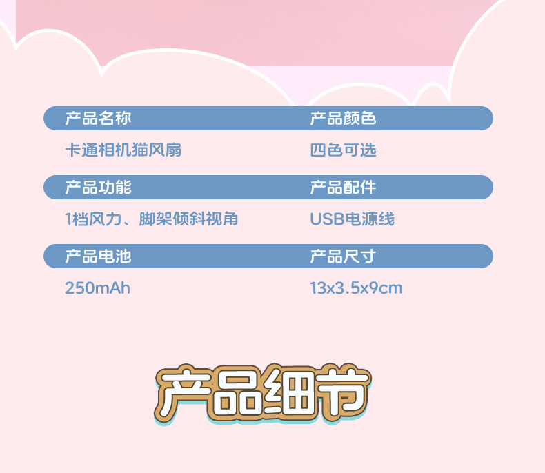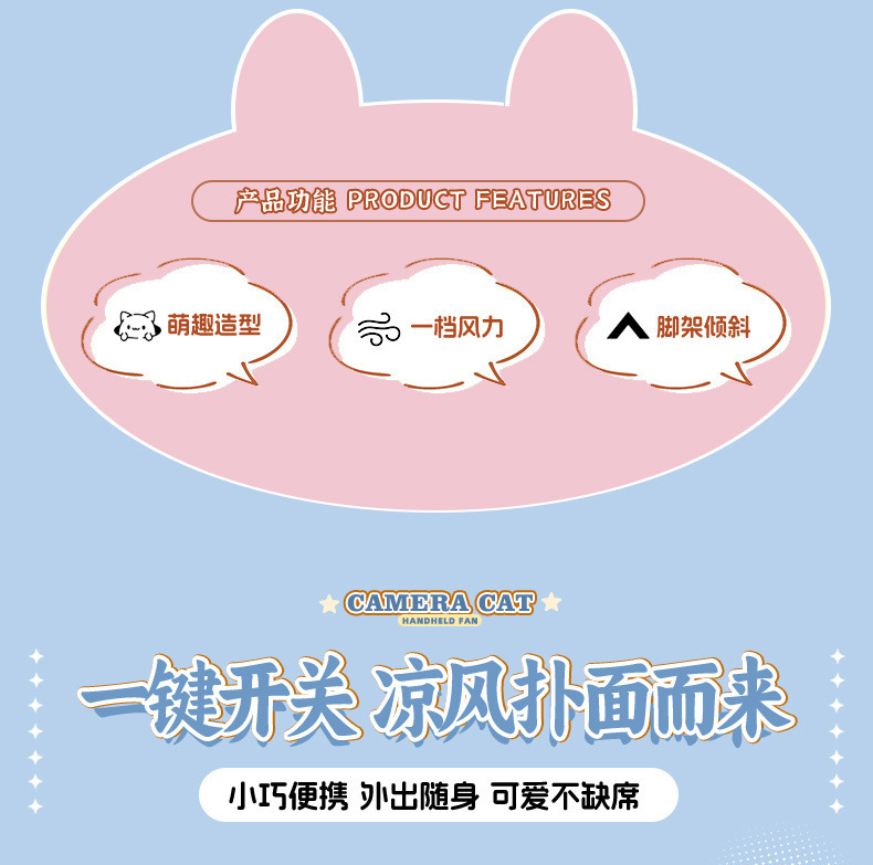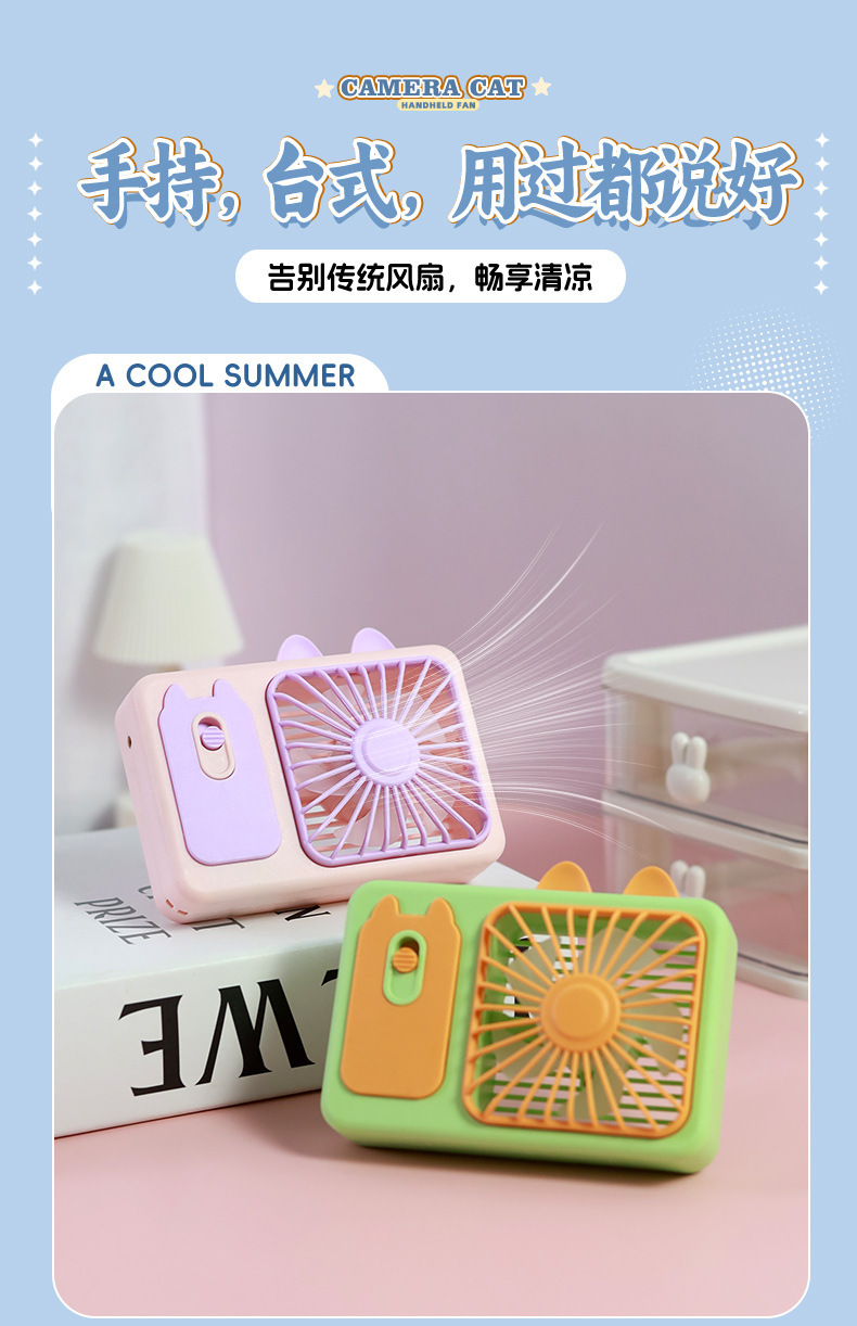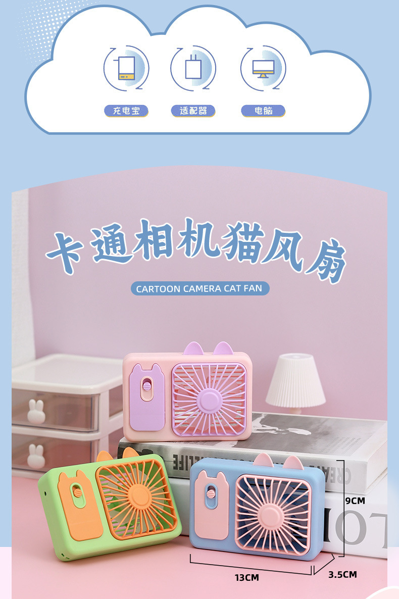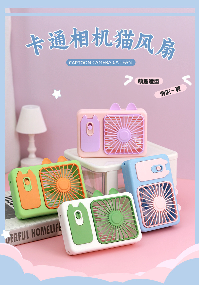 ZB143 Cartoon Camera Cat Charging Fan