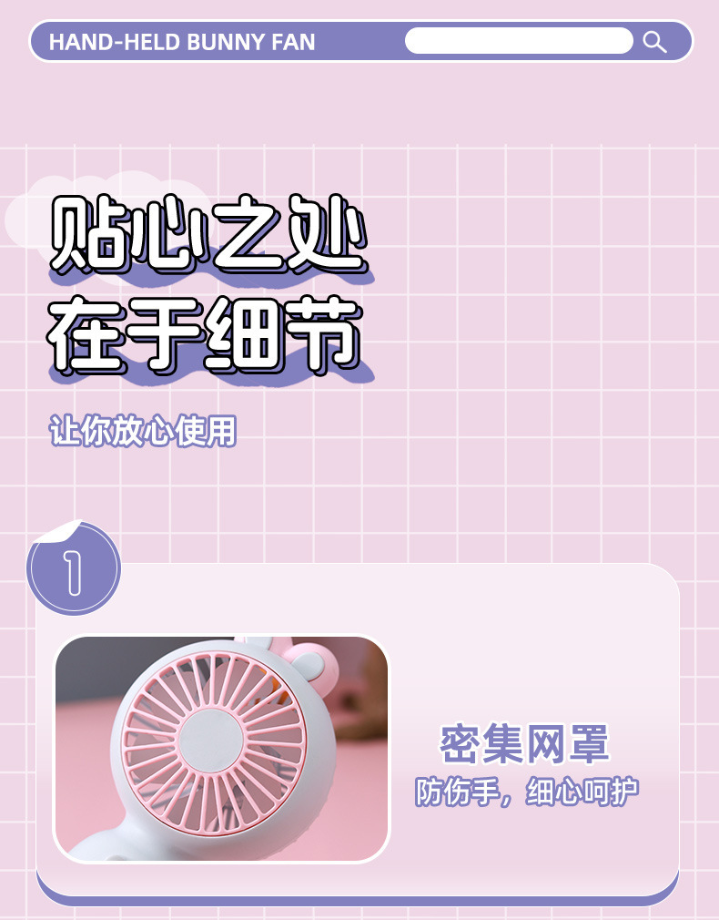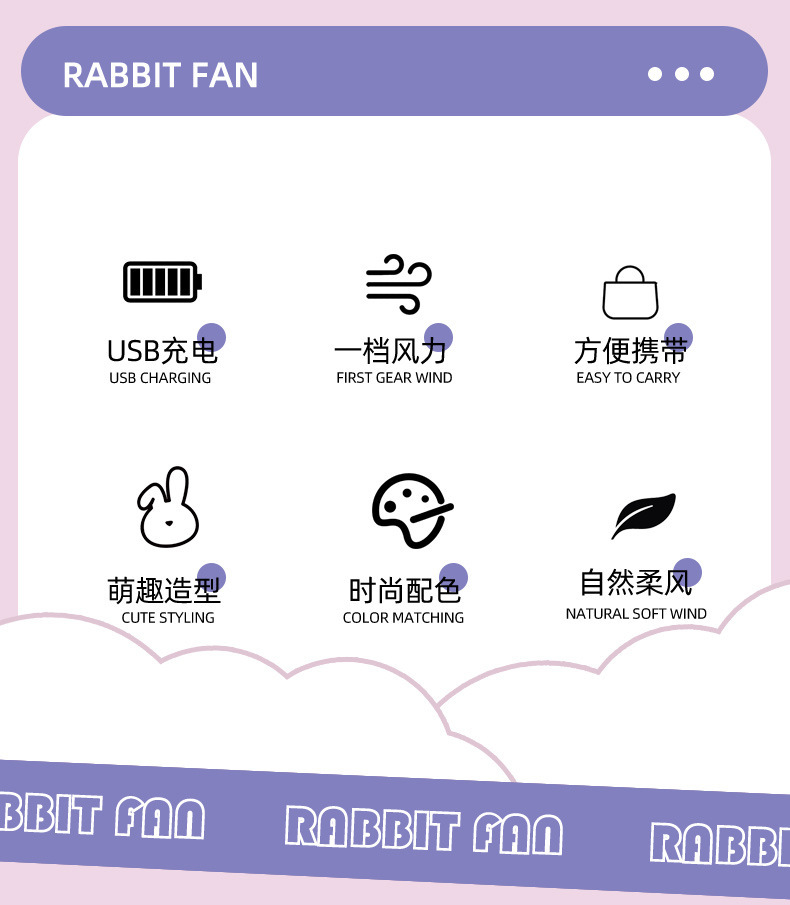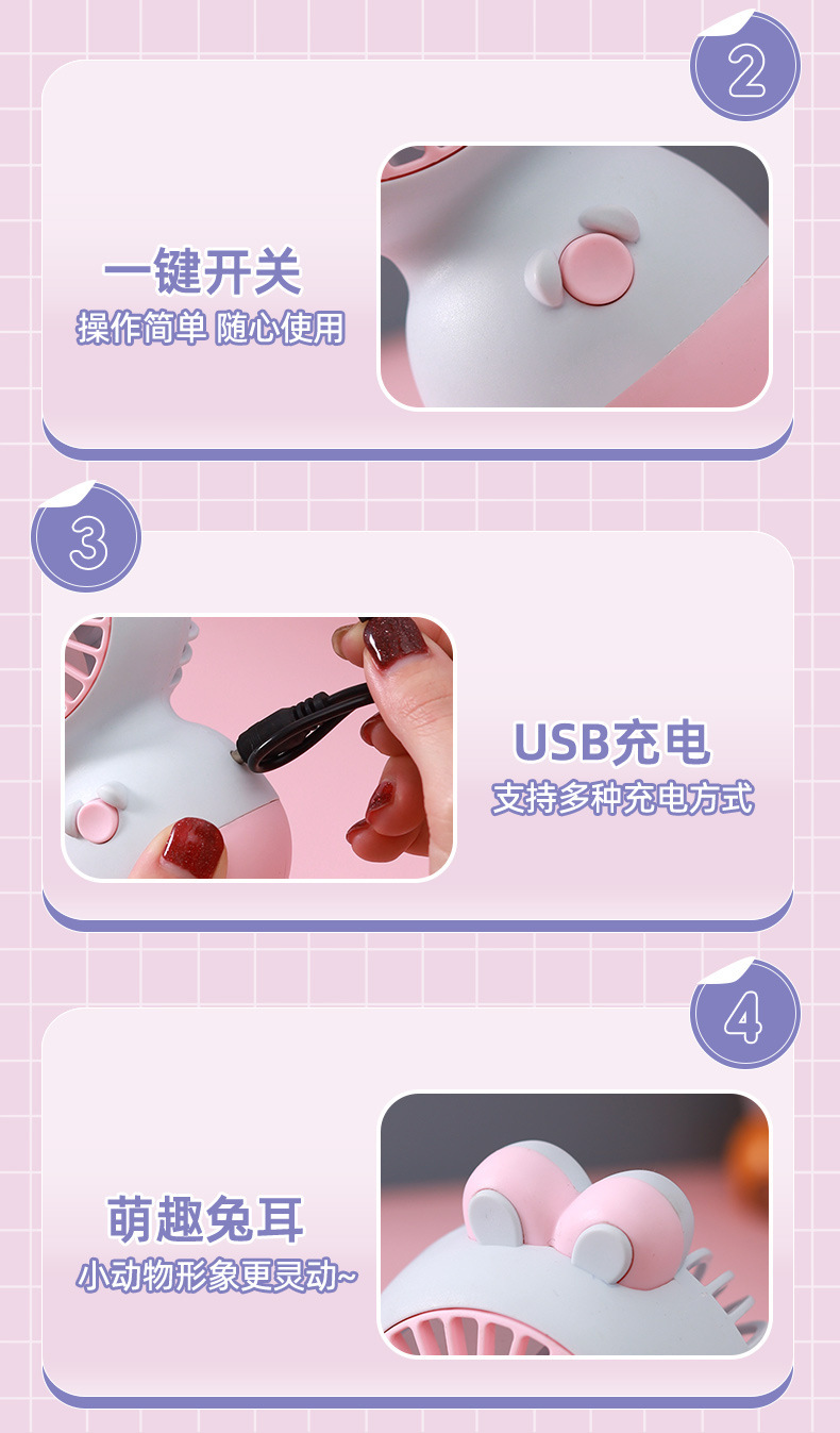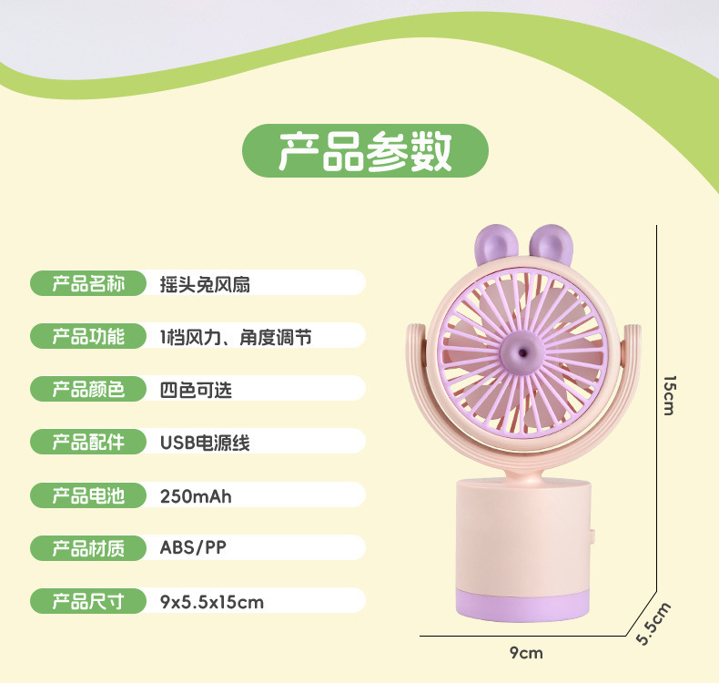 ZB141 Cute Pet Head-Tilting Rabbit Charging Fan