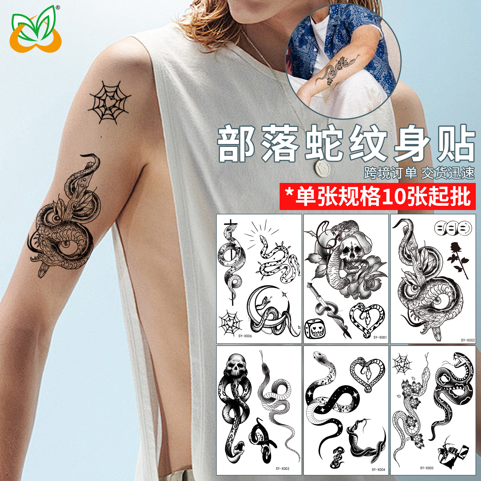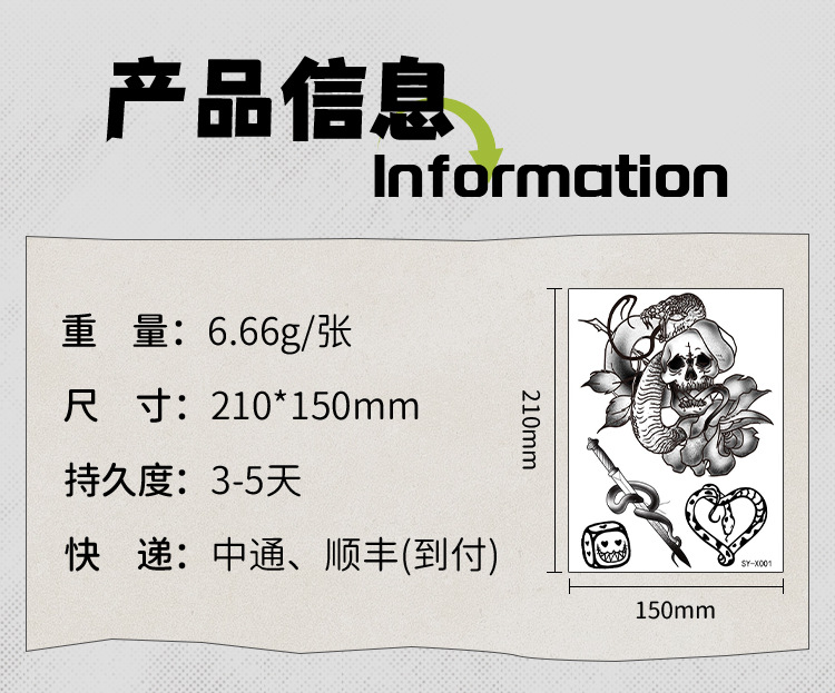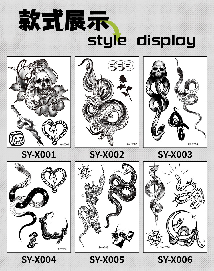 product number: snake tattoo sticker sy-x001-x006