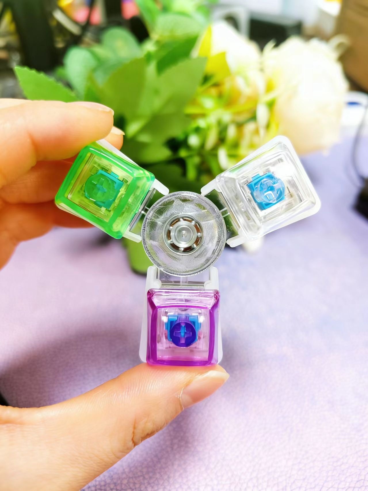 color: 3-button press hand spinner-color cap mixed color (pvc boxed