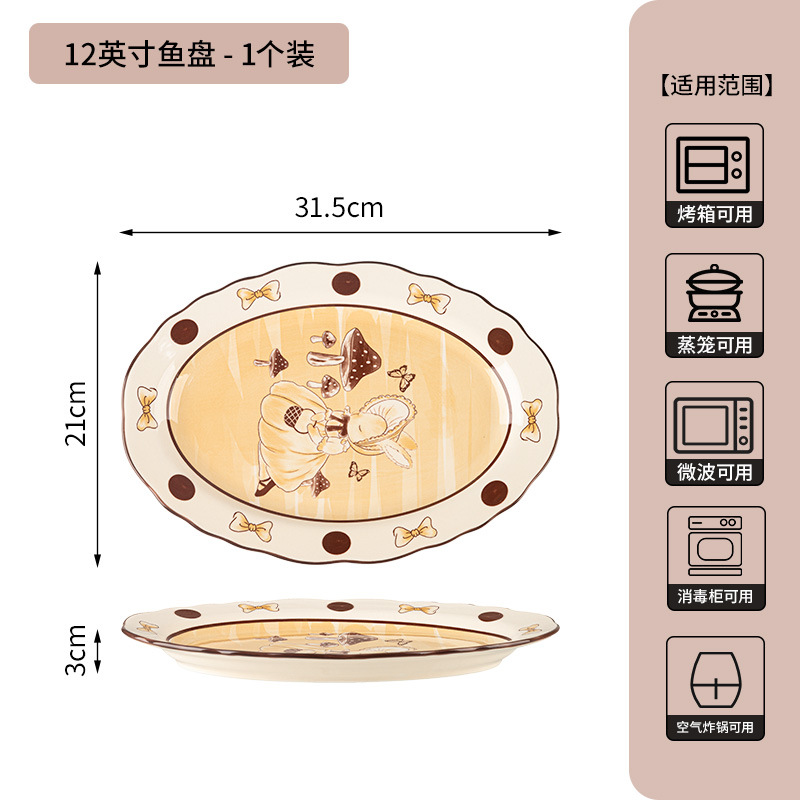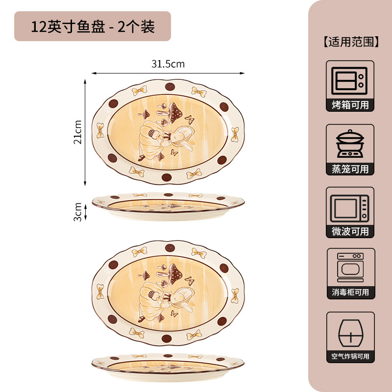 12-inch lotus-edged fish dish-milky white glaze hepburn rabbit-set of 2