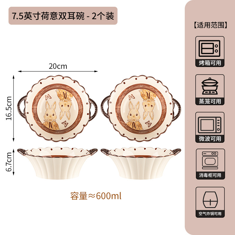 7.5-inch lotus double-ear bowl-milky white glaze hepburn rabbit-set of 2