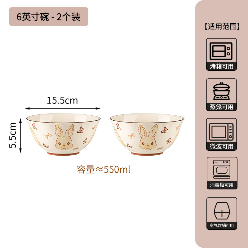 6-inch floral double-ear bowl-milky white glaze hepburn rabbit