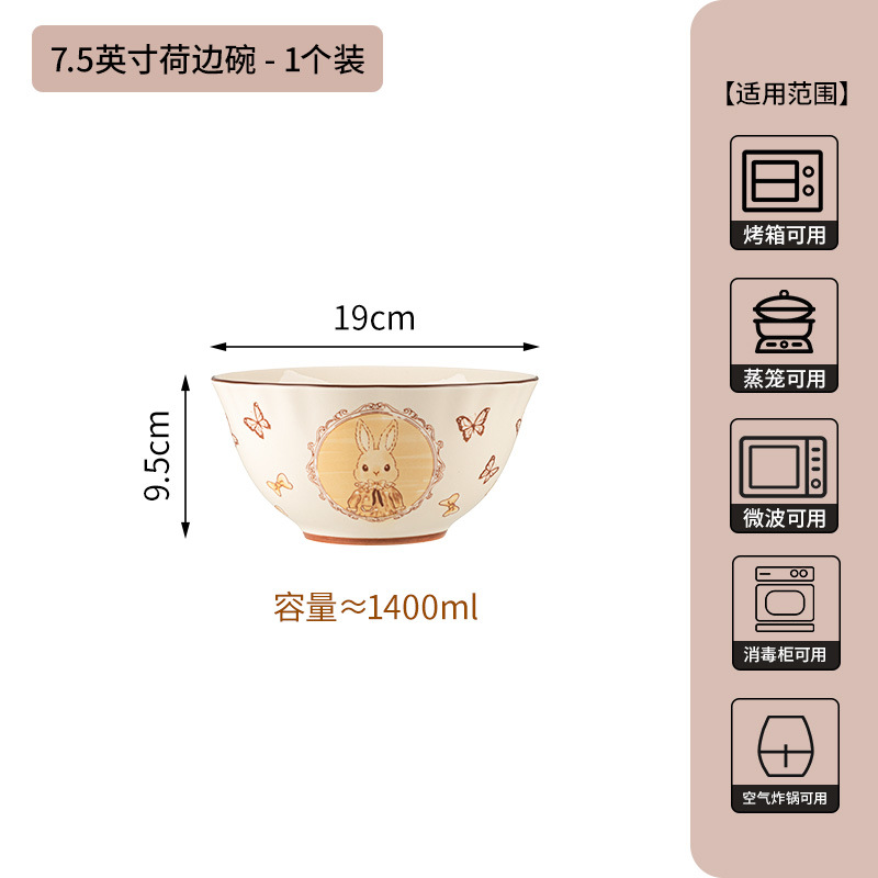 7.5-inch lotus-themed double-ear bowl-milky white glaze hepburn rabbit