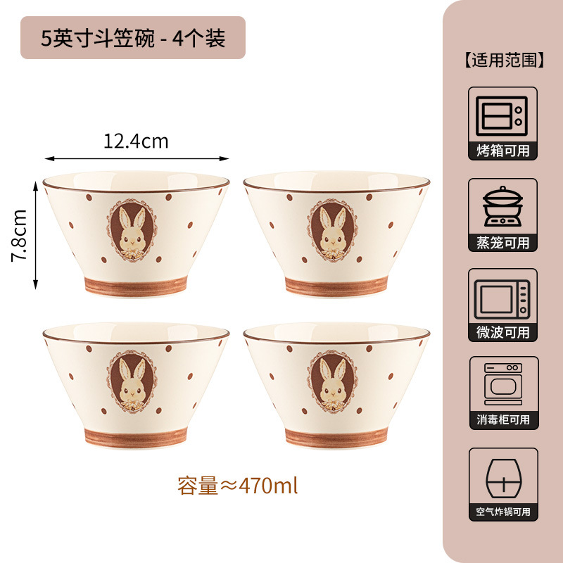 5-inch rain-hat shaped bowl-milky white glaze hepburn rabbit-set of 4