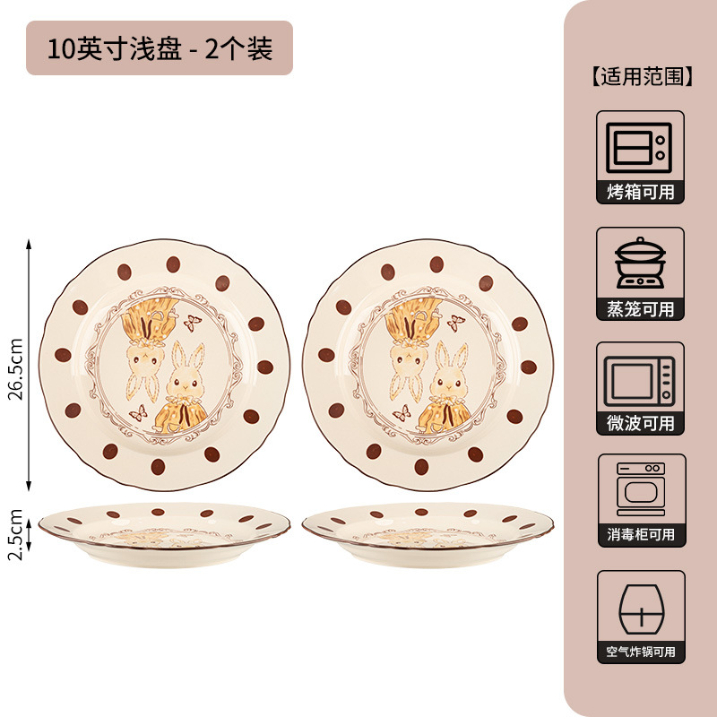 10-inch lotus-edge shallow plate-milky white glaze hepburn rabbit-set of 2