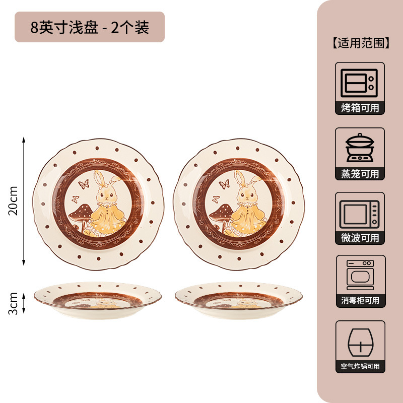 8-inch lotus-edge shallow plate-milky white glaze hepburn rabbit-set of 2
