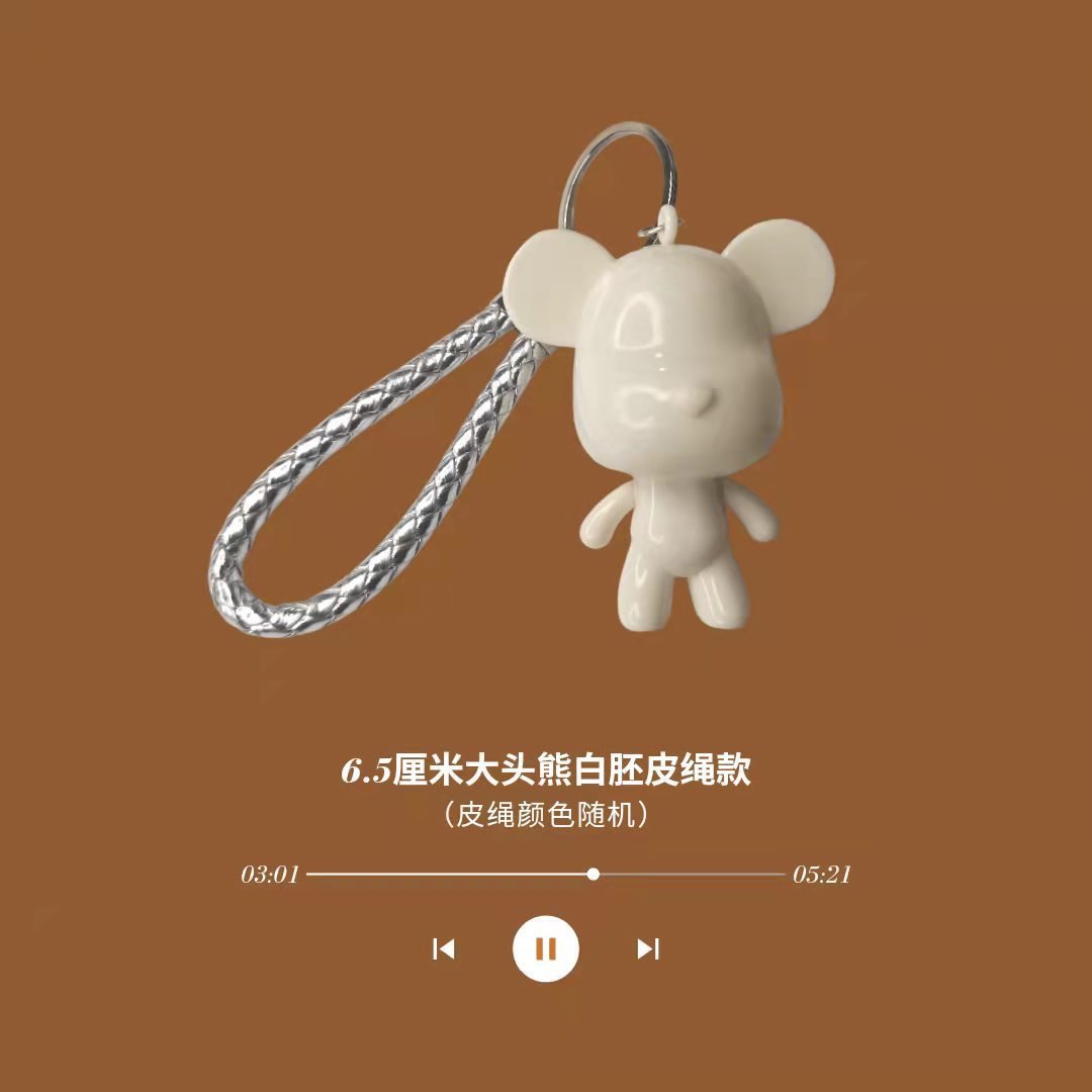 6.5cm big head bear white body [leather rope]]