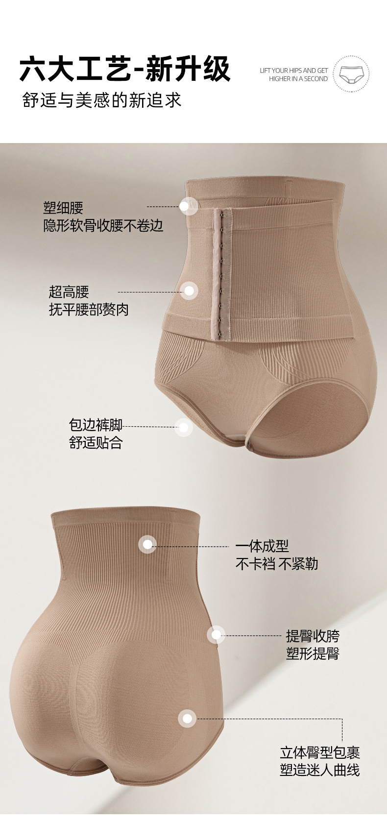 function: seamless, hip lifting, belly contracting