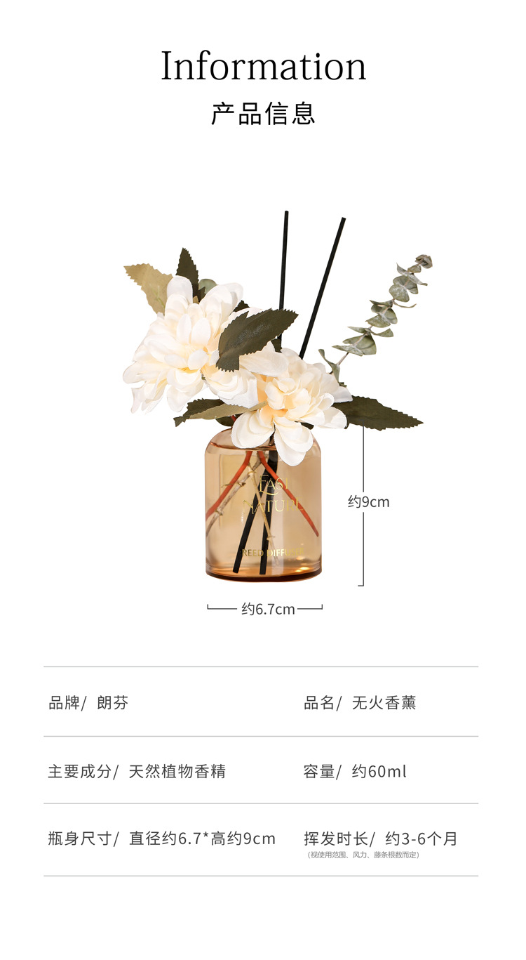 图片中液体仅做参考,香薰瓶实际容量容量约150ML(液体装至瓶颈),香薰摆件默认赠送60ML精油