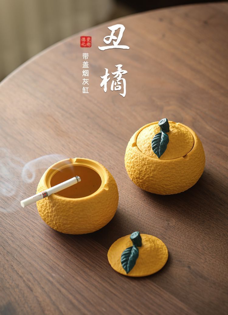 tangerine ashtray-with lid