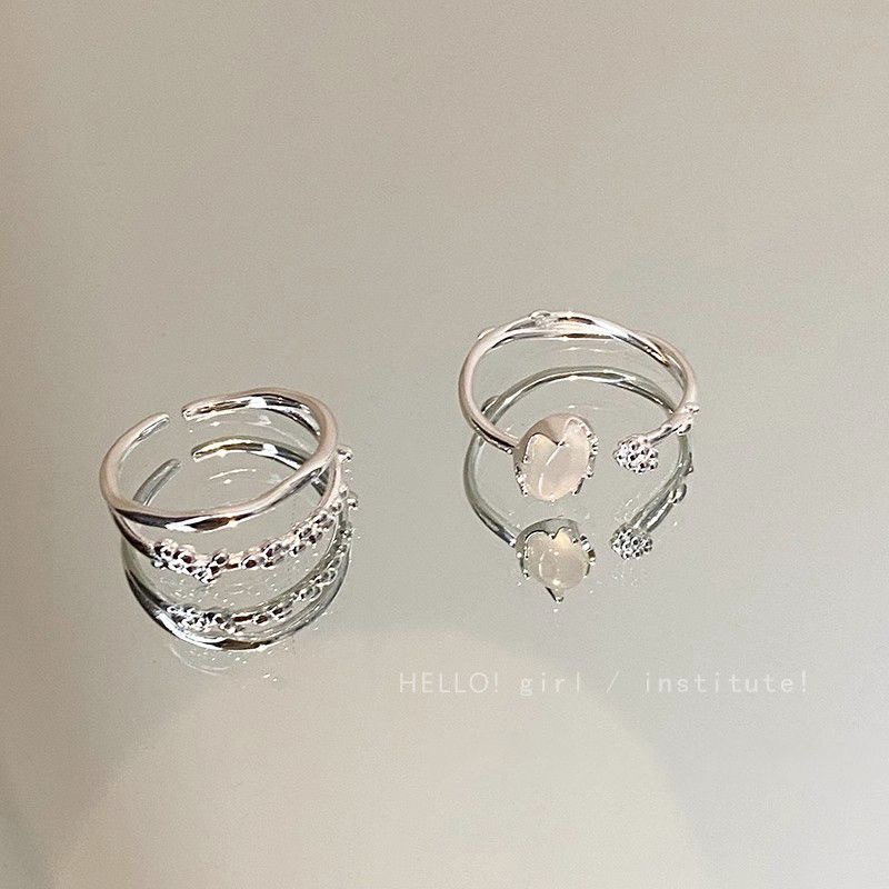 white moonlight texture ring [2-piece set]]