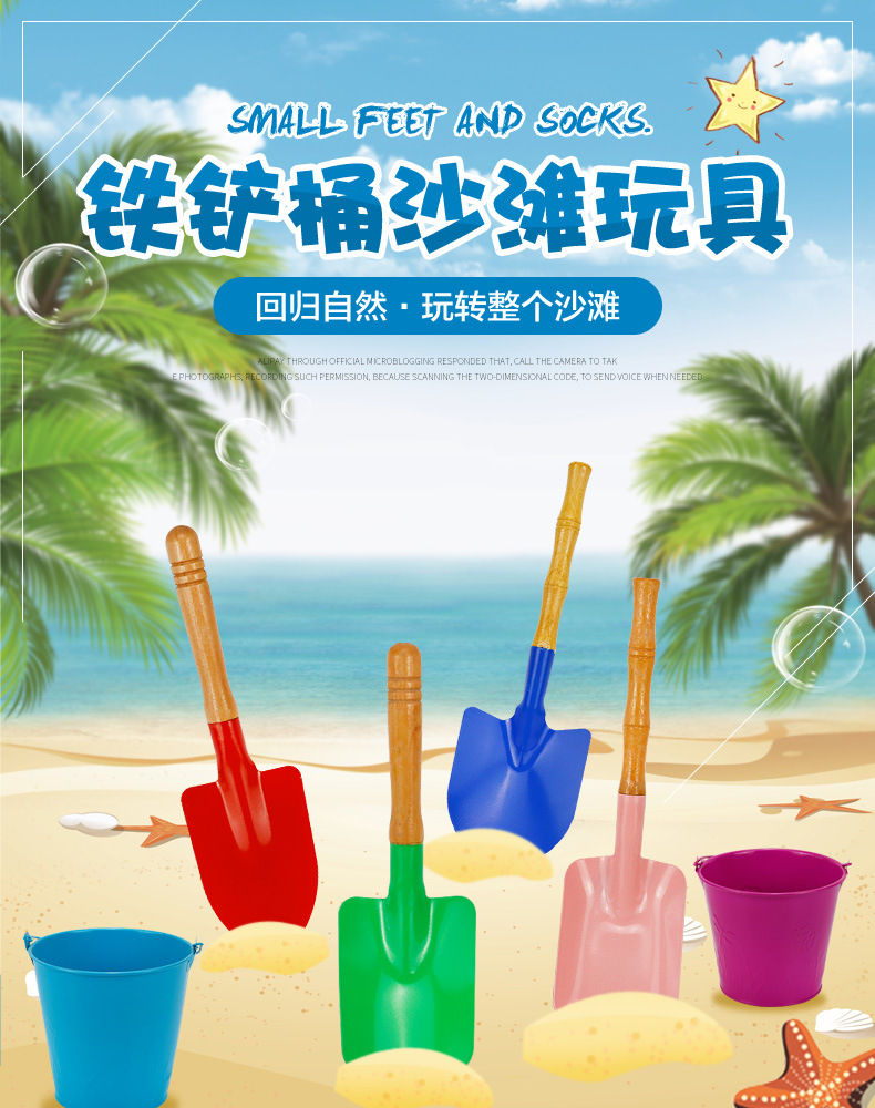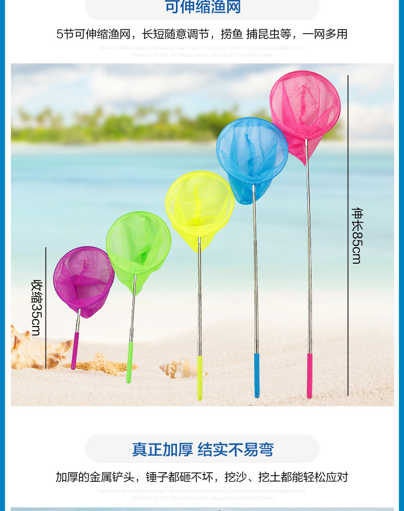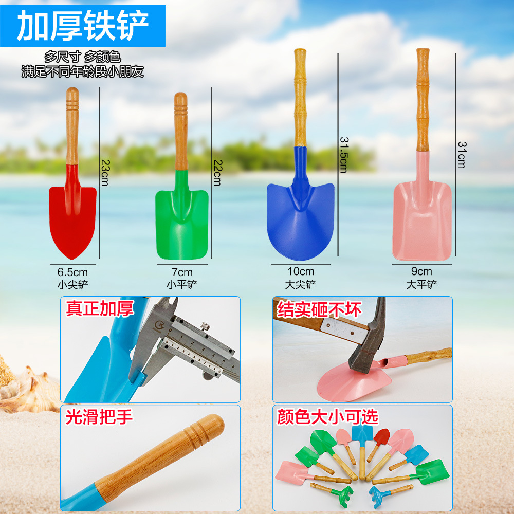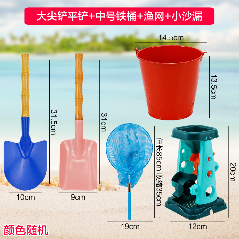 small tip shovel flat shovel + large iron bucket + fishnet + small hourglass