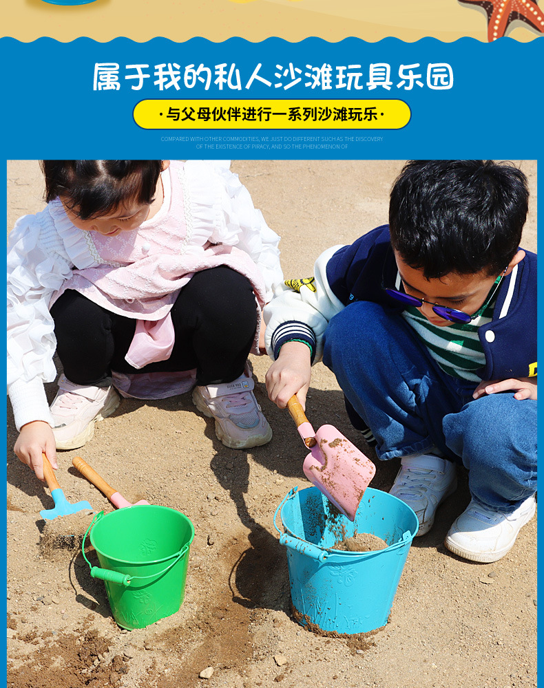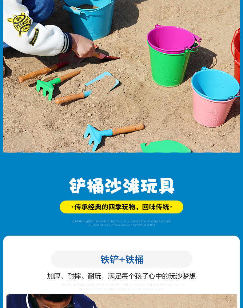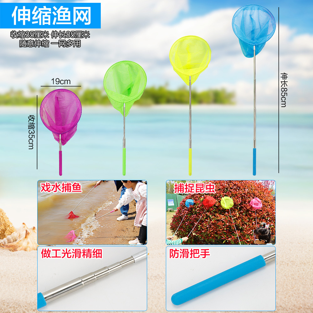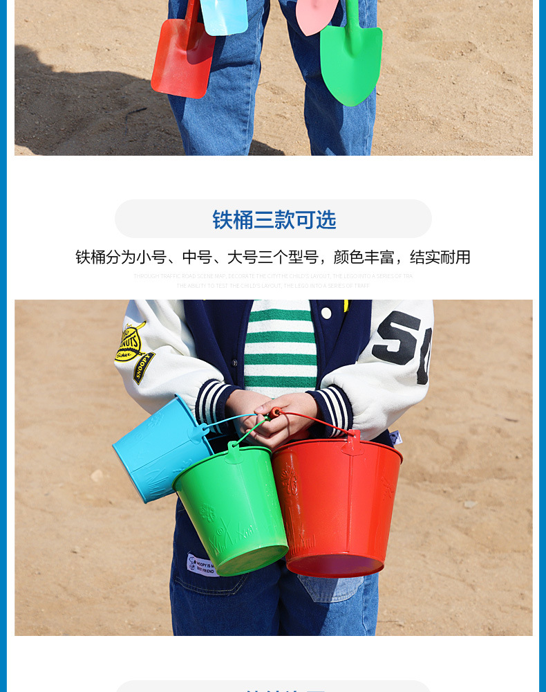 small tip shovel flat shovel + large iron bucket + fishnet + small hourglass