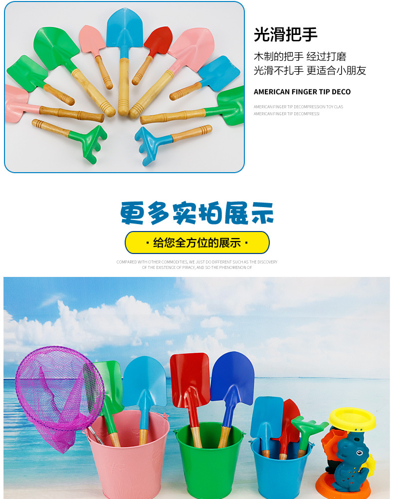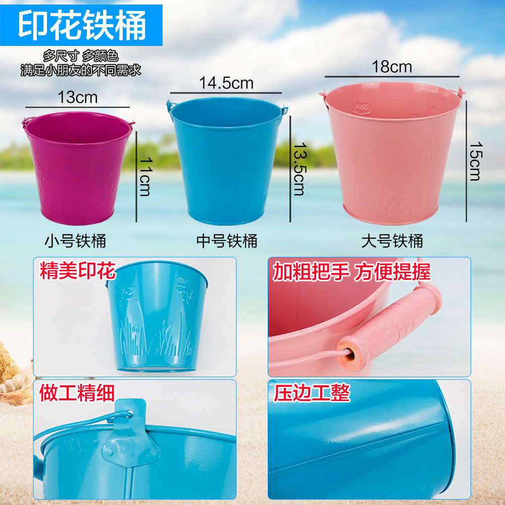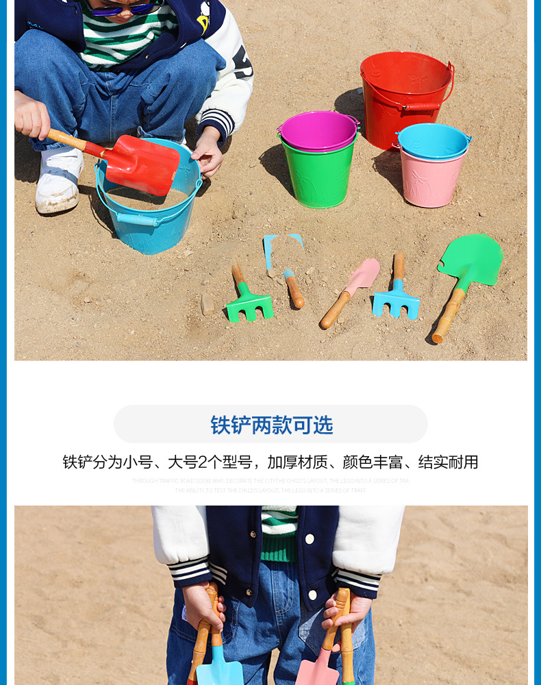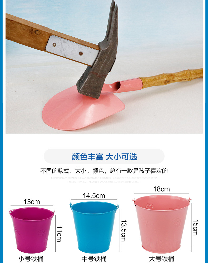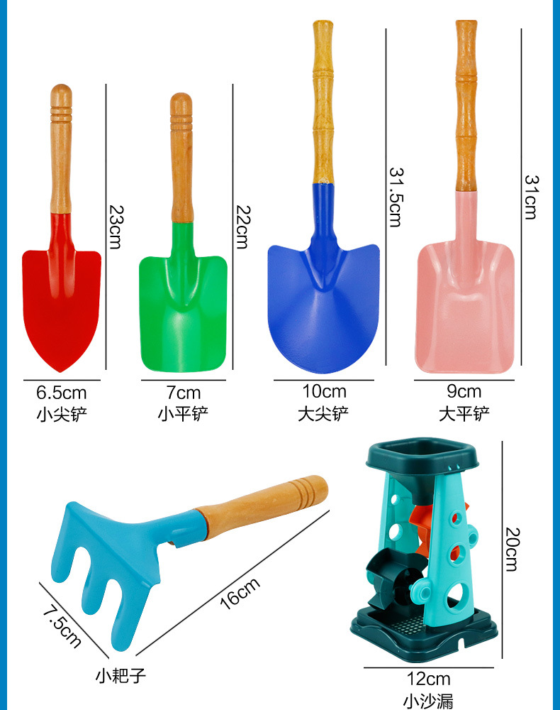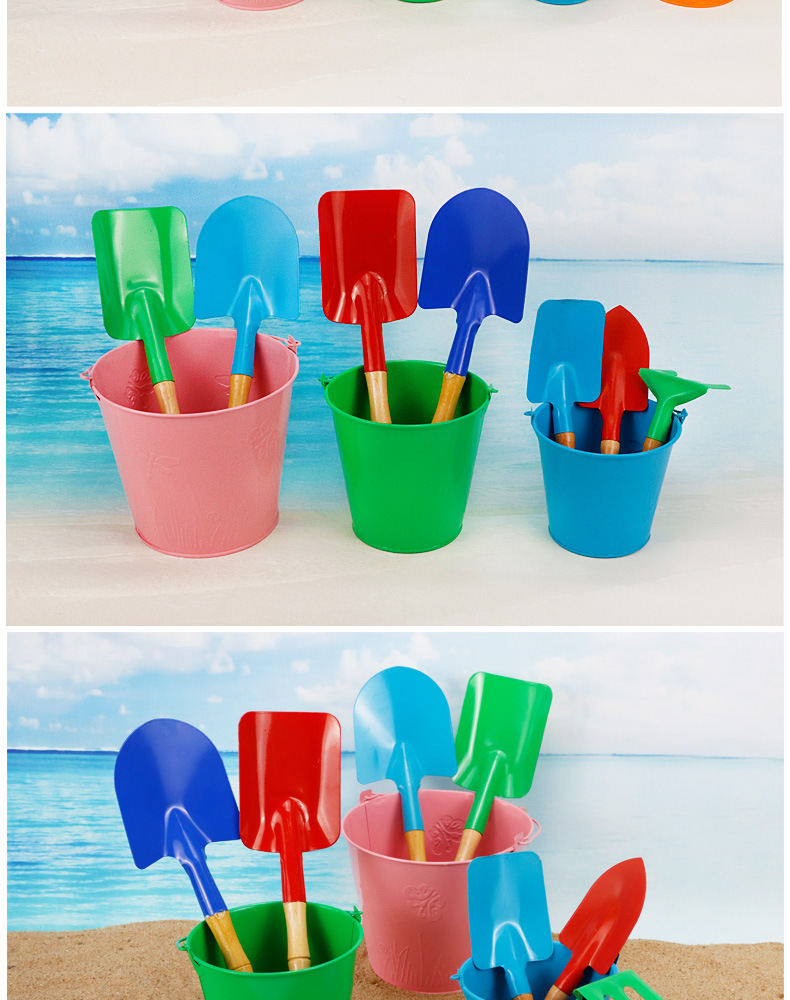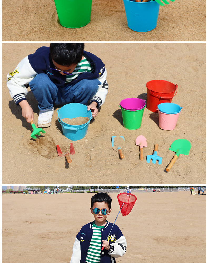 small tip shovel flat shovel rake + large iron bucket + fishnet + small hourglass