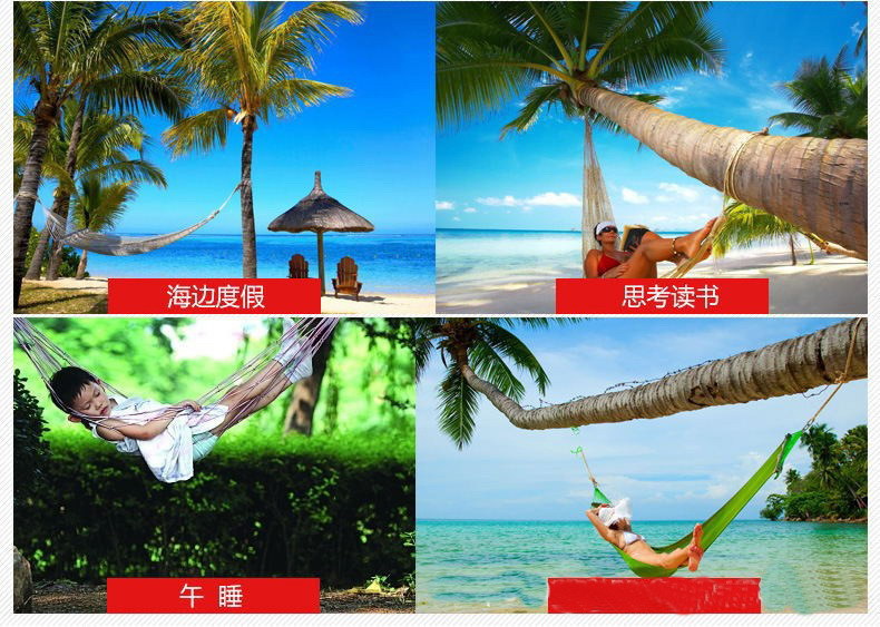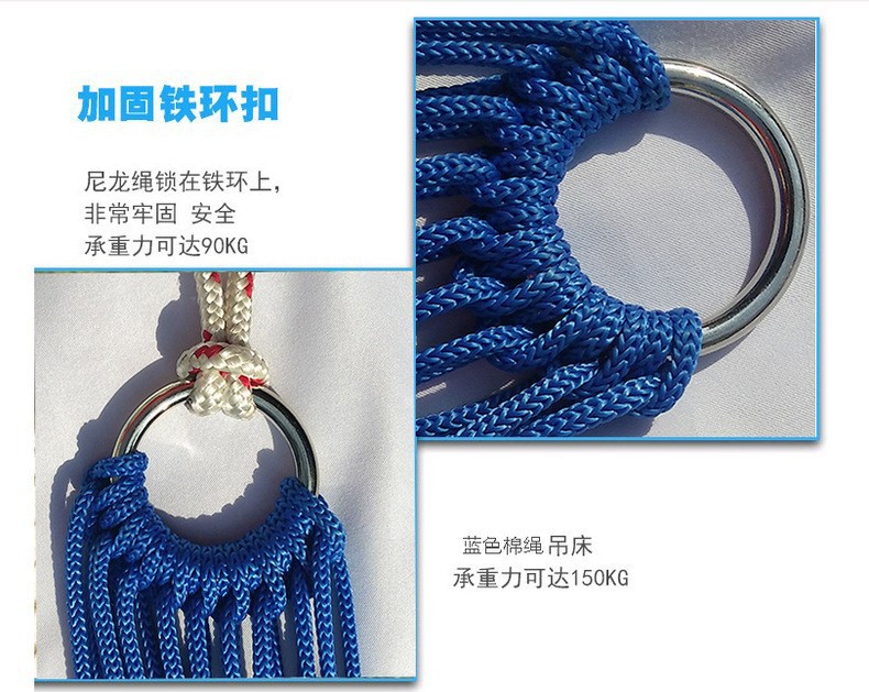 1. The mesh surface of the bed body is made of nylon ropes, which not only ensures the durability of the net fabric but also makes the hammock convenient to carry.