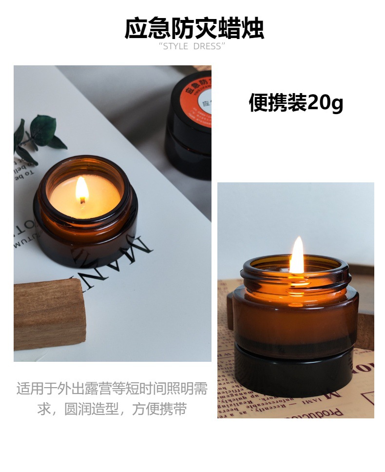 wax weight 20g emergency candle (4.5*4.5 * 3cm brown jar)