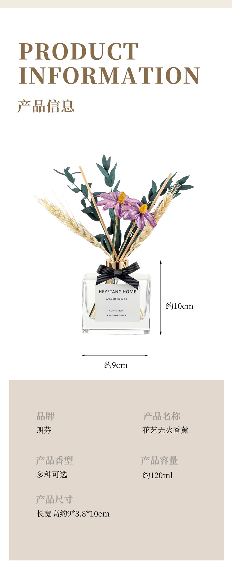 lf-686 flat square bottle preserved fresh flower & aromatherapy
