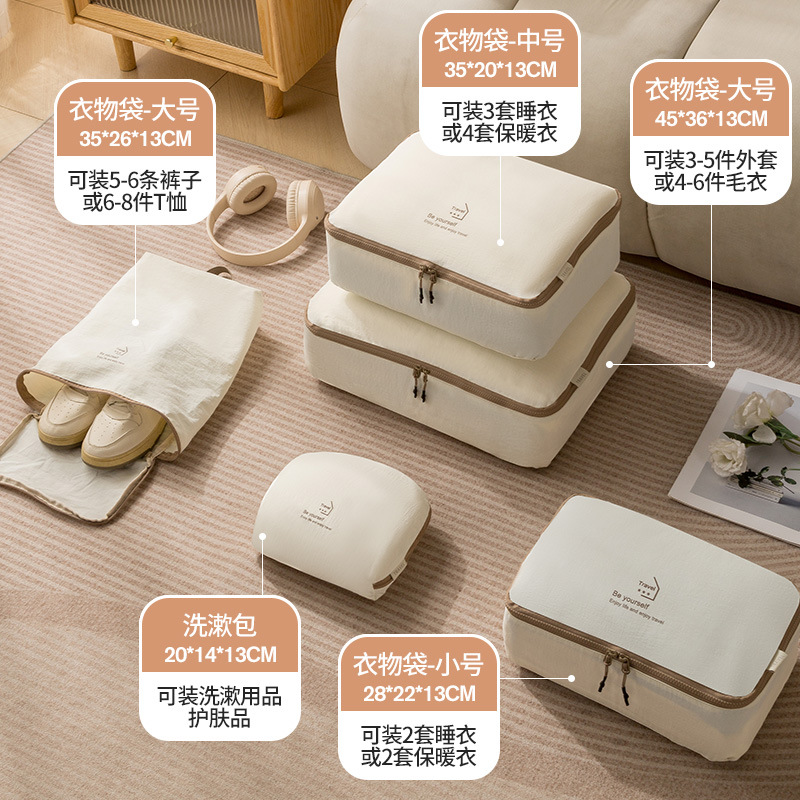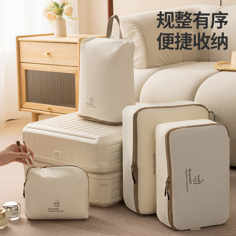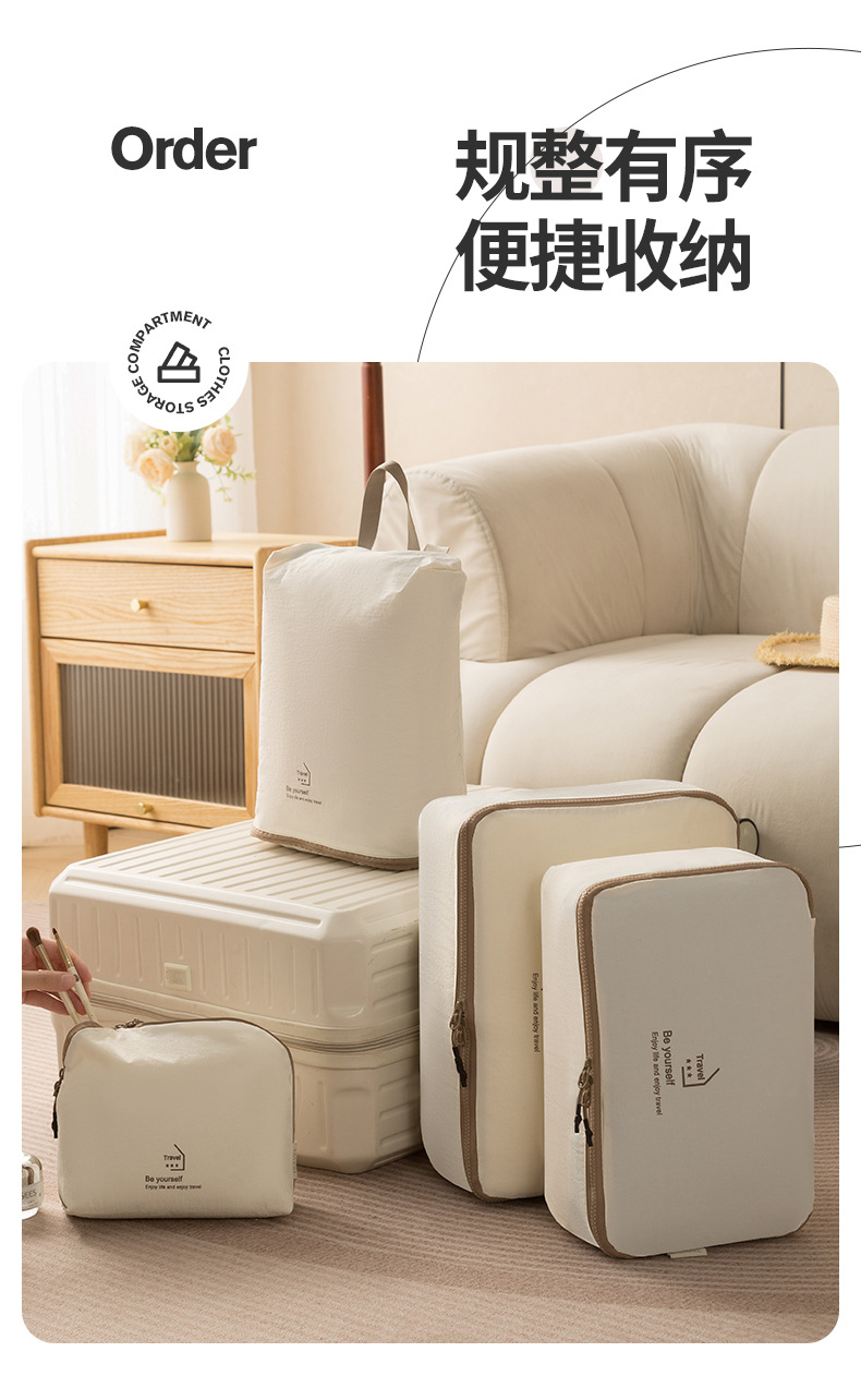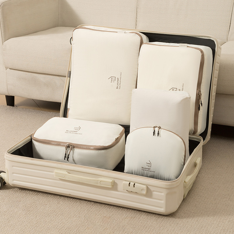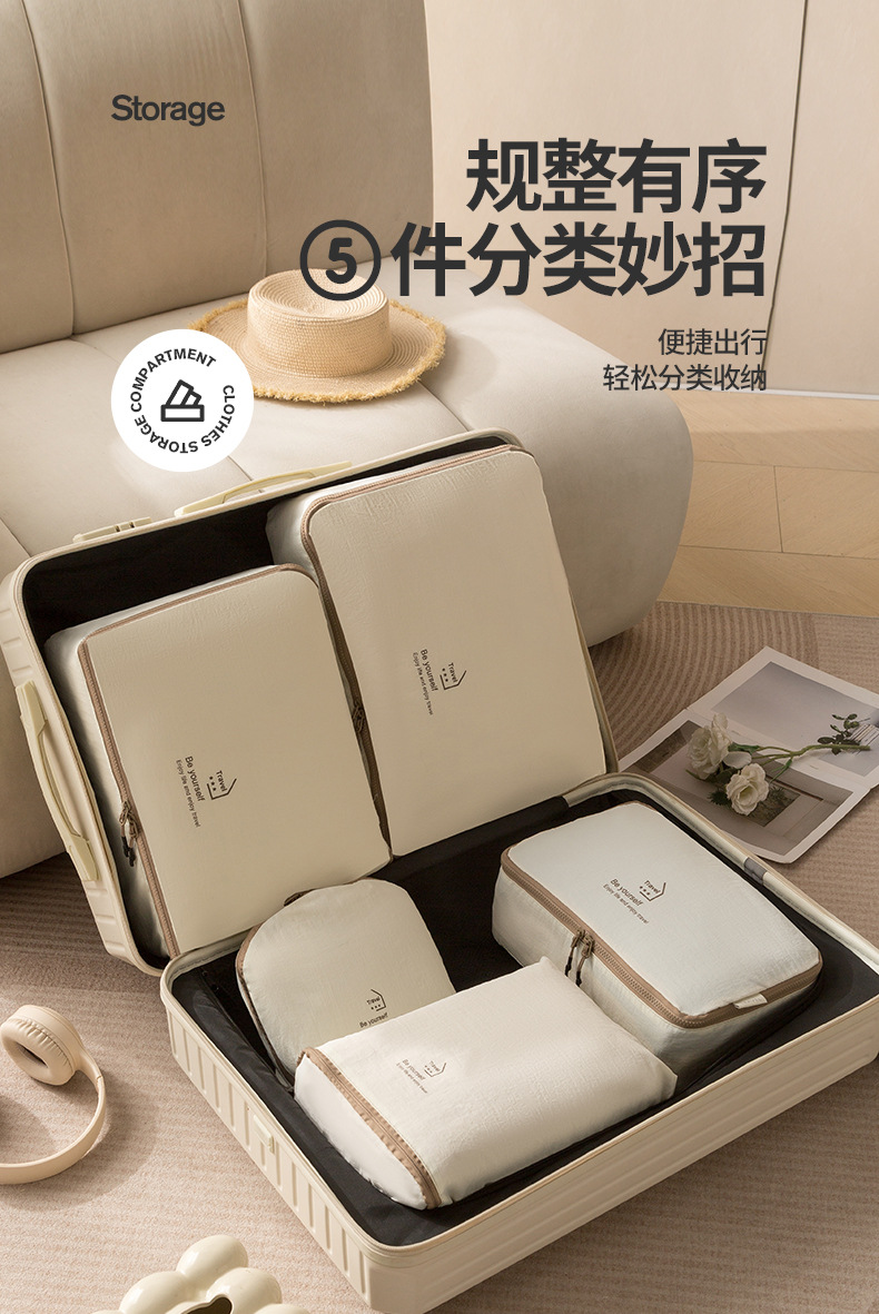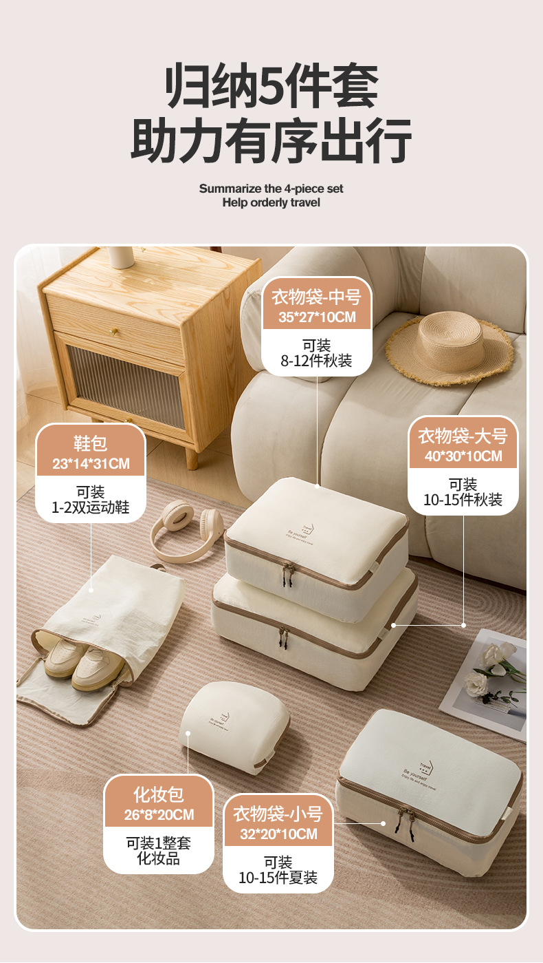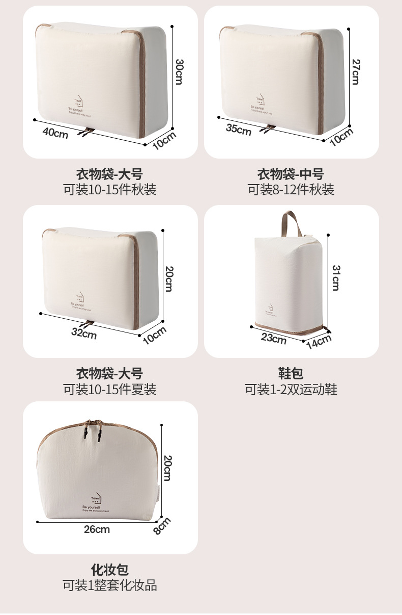 beige taslon five-piece set buggy bag