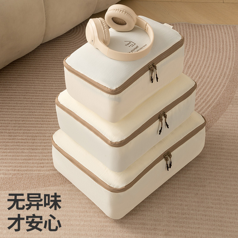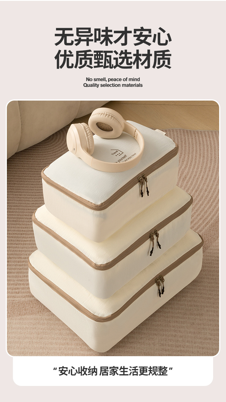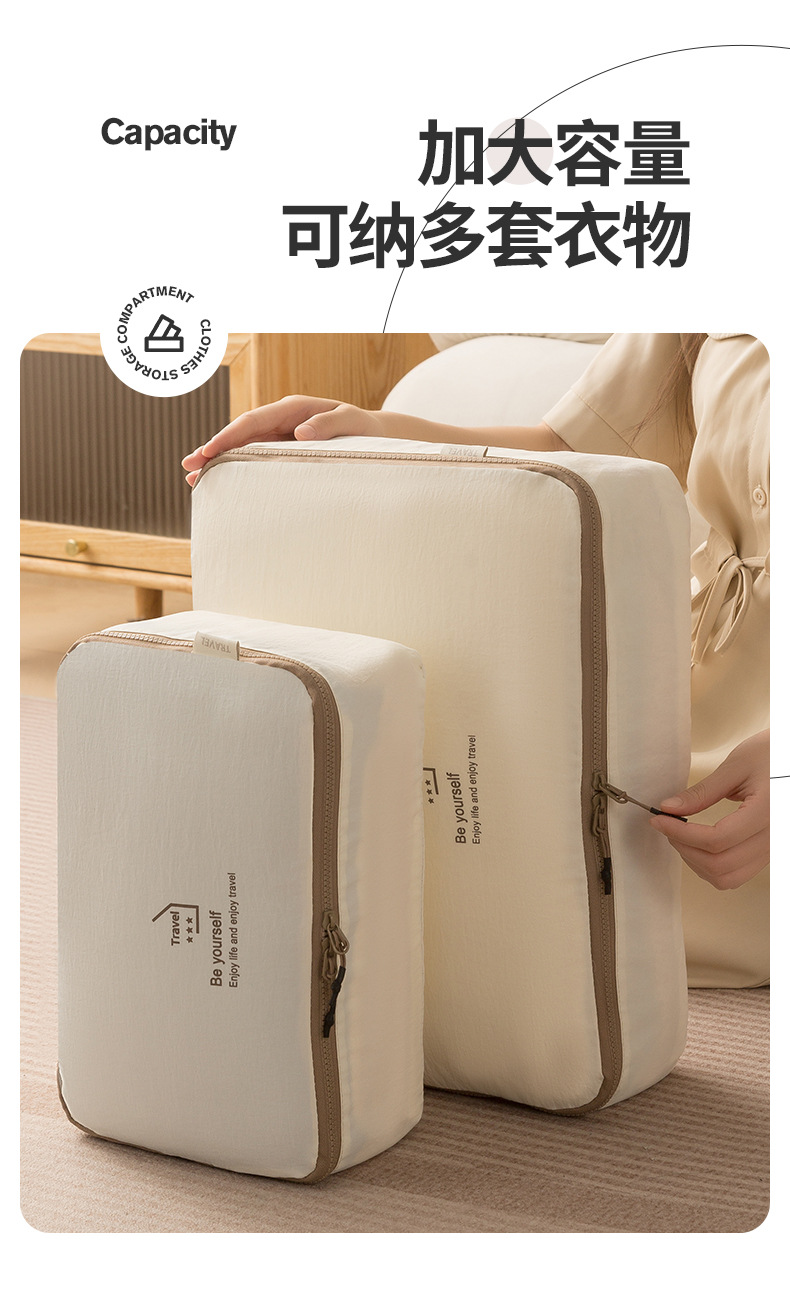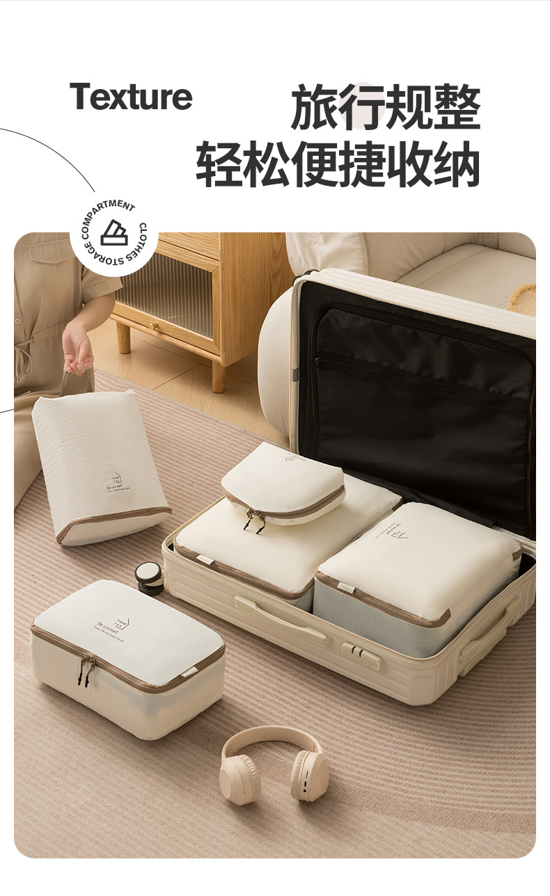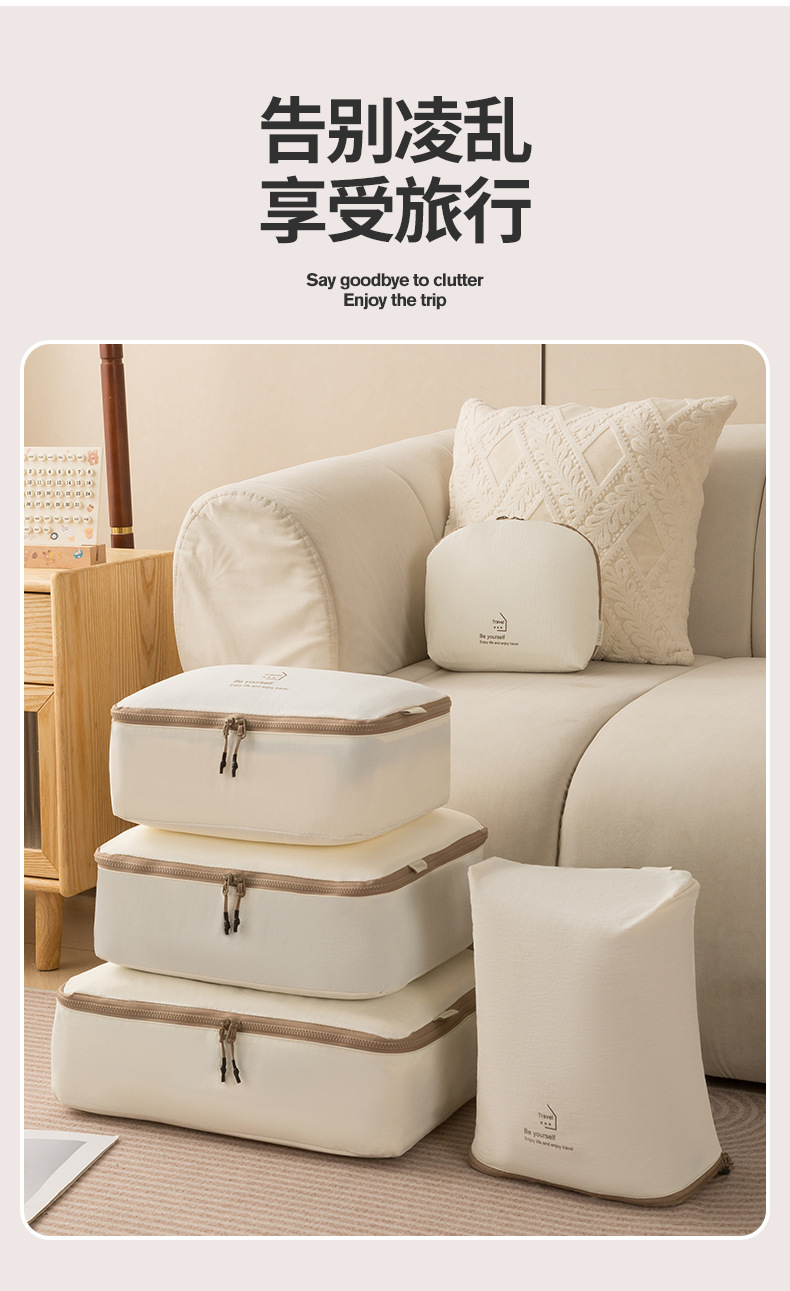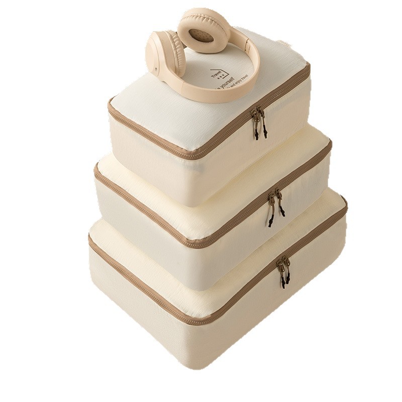 beige taslon five-piece set buggy bag
