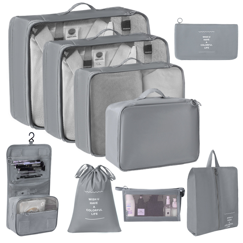 gray travel buggy bag nine-piece set [double drawstring bag + toiletry bag hung with hook]]