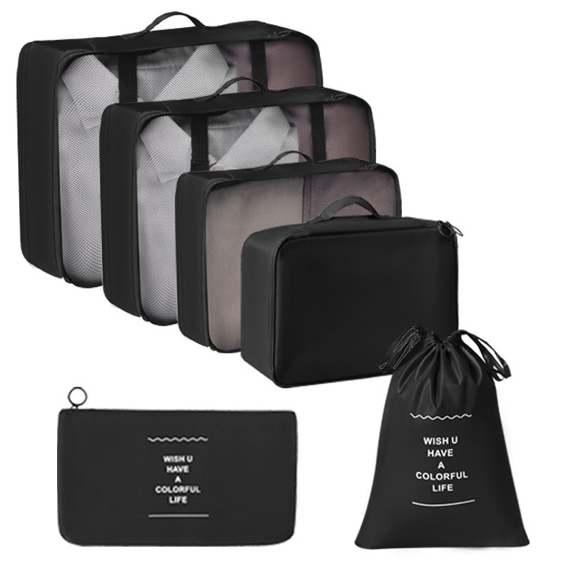 black travel buggy bag eight-piece set [double drawstring bag]]