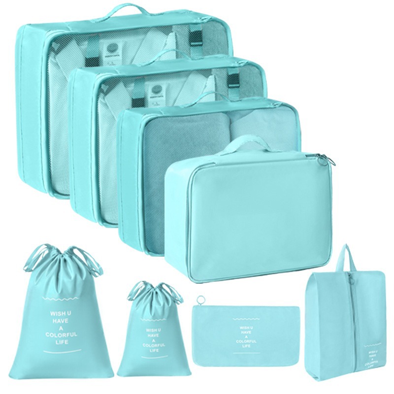 bright blue travel buggy bag eight-piece set [double drawstring bag]]