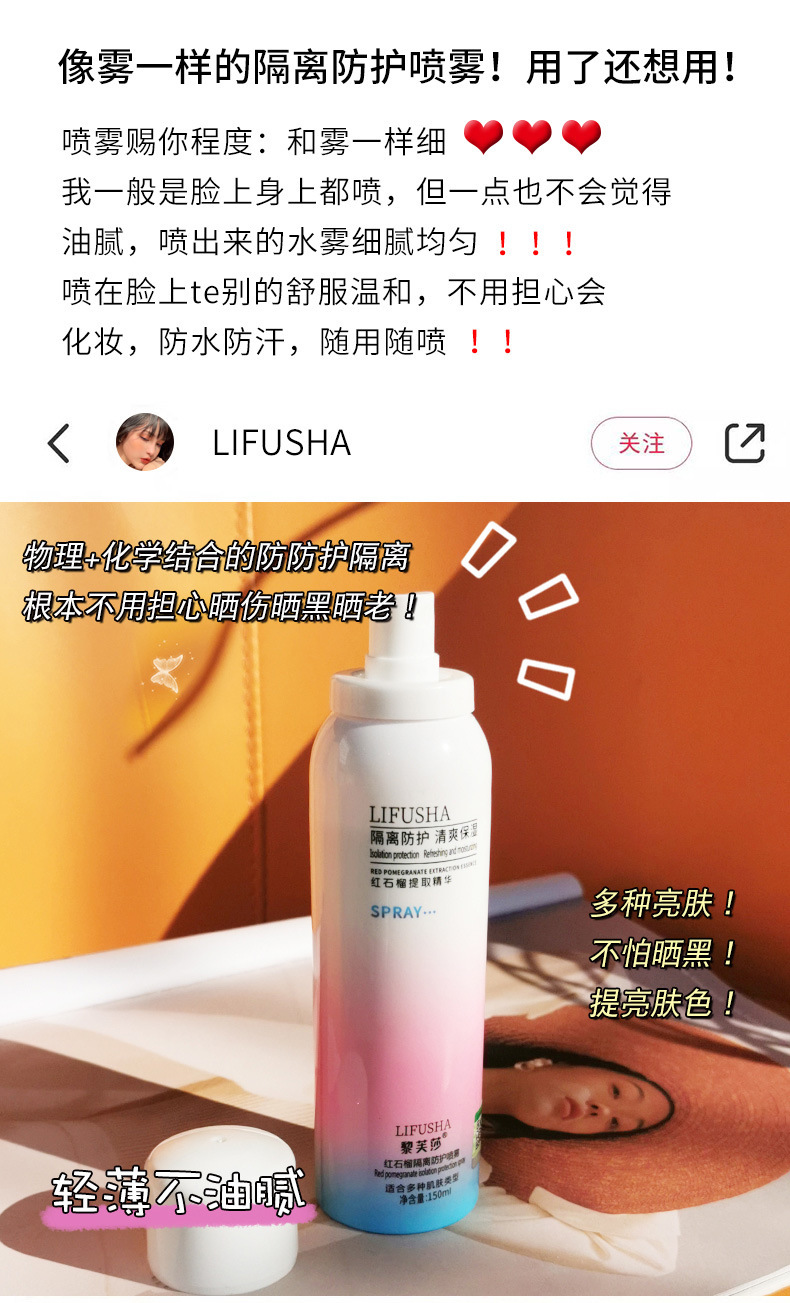 product name: lifusha li fusha pomegranate isolation protection spray i