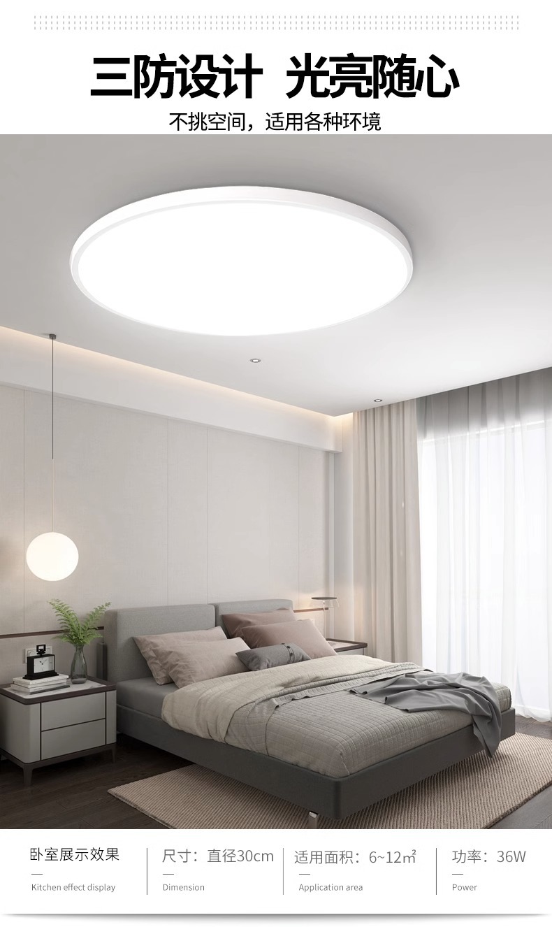 three-proof ceiling lamp [elegant white] ultra-thin-36w-white light