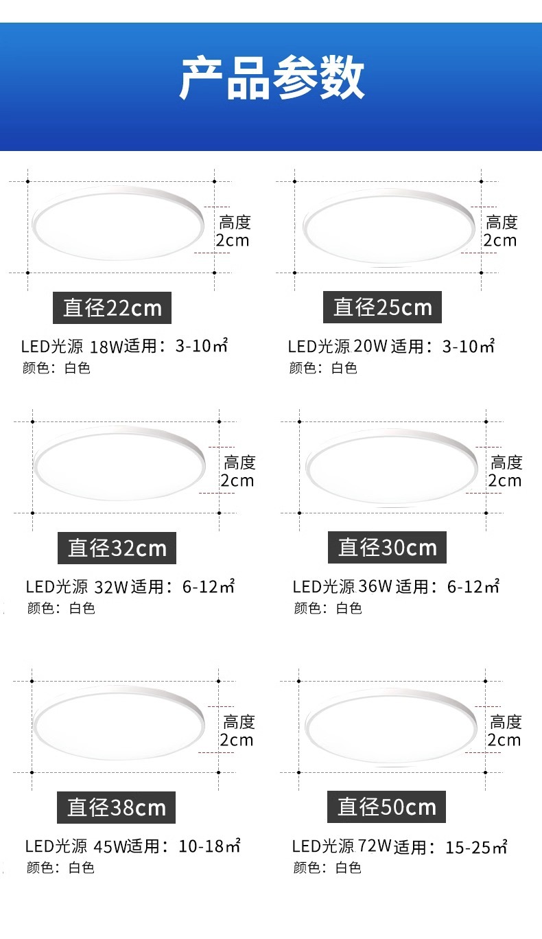 three-proof ceiling lamp [elegant white] ultra-thin-18w-white light upgrade