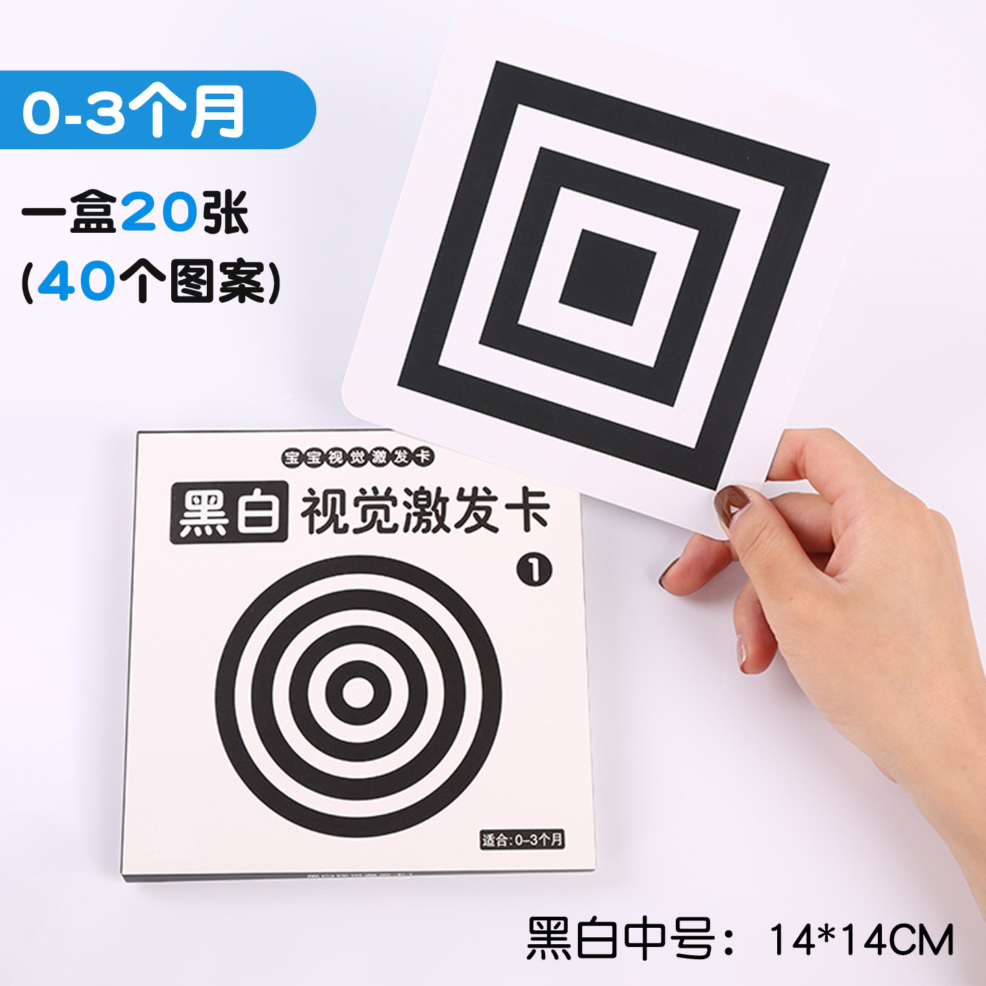 0–3 months, 14cm visual cards, 1–black and white, medium size